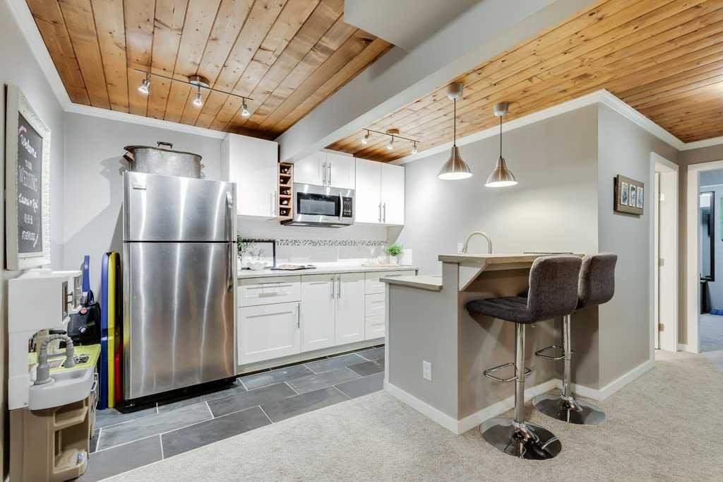 Welcome home to this beautifully kept family home on a quiet street in Airdrie with almost 2200 sq ft of living space! Just a short walk to parks, ponds, skating rink, soccer fields, wide-open green spaces and nearby schools. Step inside to an inviting, open-concept main floor with 9 ft ceilings, built-in speakers, a gas fireplace and an abundance of windows that keep everything bright and cheerful. The kitchen offers granite counters, plenty of cabinet space and a generous dining area, plus a handy desk/workstation area on the main floor. Upstairs you’ll find three comfortable bedrooms, convenient upper laundry, a large full bathroom with door to the bedroom, and a spacious primary suite with a walk-in closet and a large ensuite featuring a jetted corner soaker tub, makeup area, and separate shower. The basement is fully finished with permits and feels like its own retreat, complete with a kitchenette, cool concrete countertops, slate flooring, warm wood (cedar-style) ceilings, a cozy living area, full bathroom, 4th bedroom and great storage. This home offers the potential to easily add a side entrance, allowing access to the basement that way, if desired.