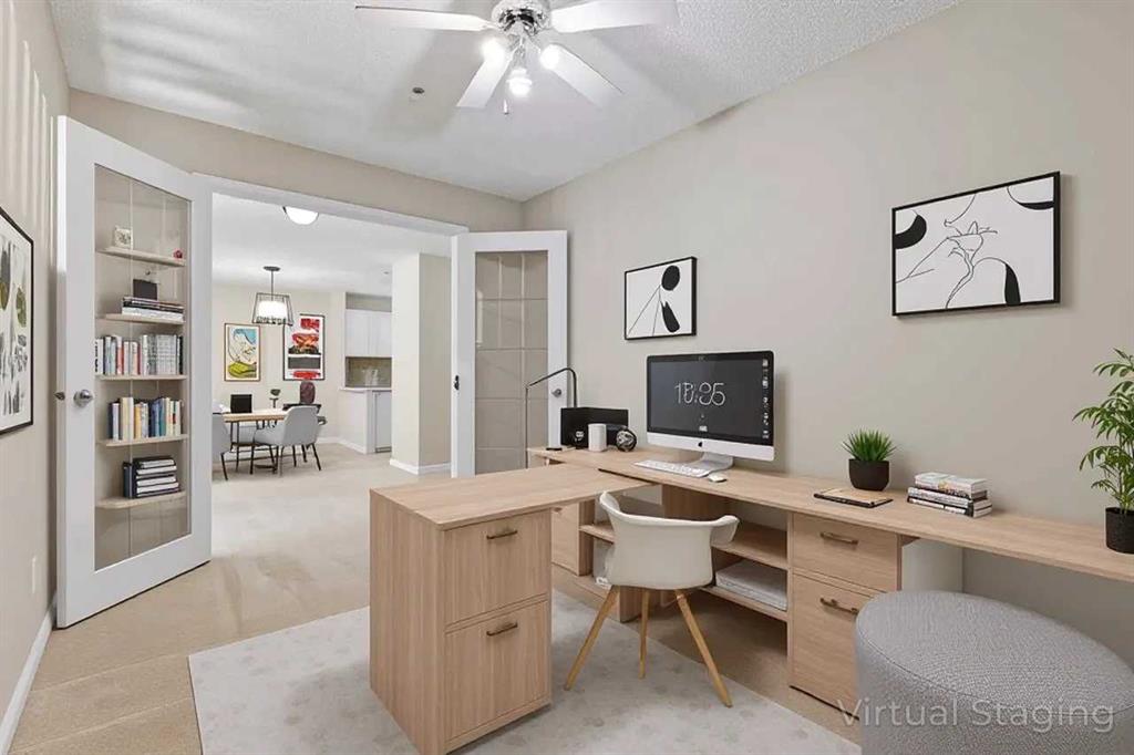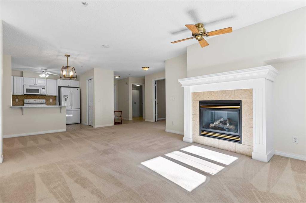 Experience easy living in the exclusive Emerald Ridge complex, nestled in the sought after community of Parkland! This beautifully maintained spacious 2 bedroom, 2 bath condo with den/office features an open concept Living/Dining/Kitchen that is perfect for entertaining or relaxing by the living room fireplace. The bright kitchen has an island, pantry, lots of cabinets and Quartz countertops. The den offers versatility as an office or other options for living space, and the living room has direct access to the south facing patio where you can relax and enjoy a morning coffee and also has a gas hook up for your convenience . The primary bedroom features a walk in closet and an 4 piece ensuite bath. A second roomy bedroom is separated by the living room allowing privacy and is next door to a 3 piece bathroom. This unit includes 2 titled parking spaces and an off site storage unit in the heated underground garage that also has a car wash and extra visitor parking. Emerald Ridge amenities also include a huge recreational party room with bar area, fireplace, billiards and library with an outdoor patio and an on site guest suite. Parklands Park 96 is steps away and offers tons of activities including tennis and pickleball courts, frisbee golf, skating and a playground. With Fish Creek Park, Schools, Shopping, and Deerfoot Trail nearby this home offers comfort and convenience in a fabulous community.