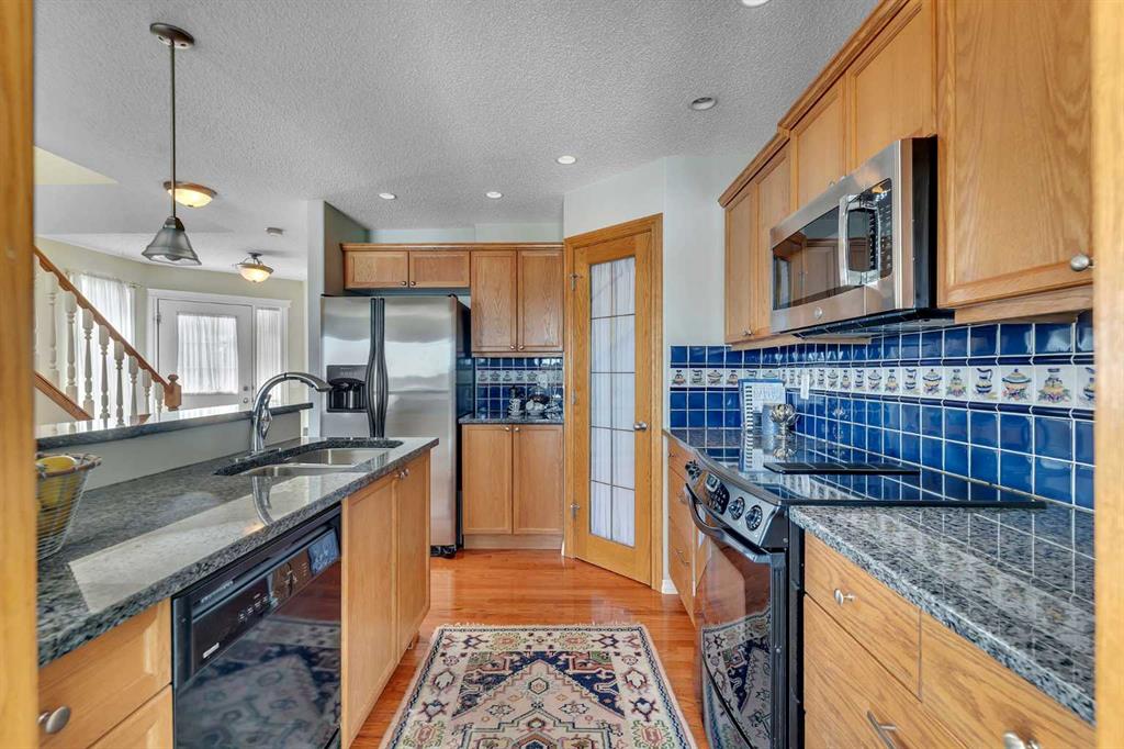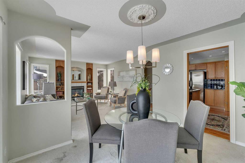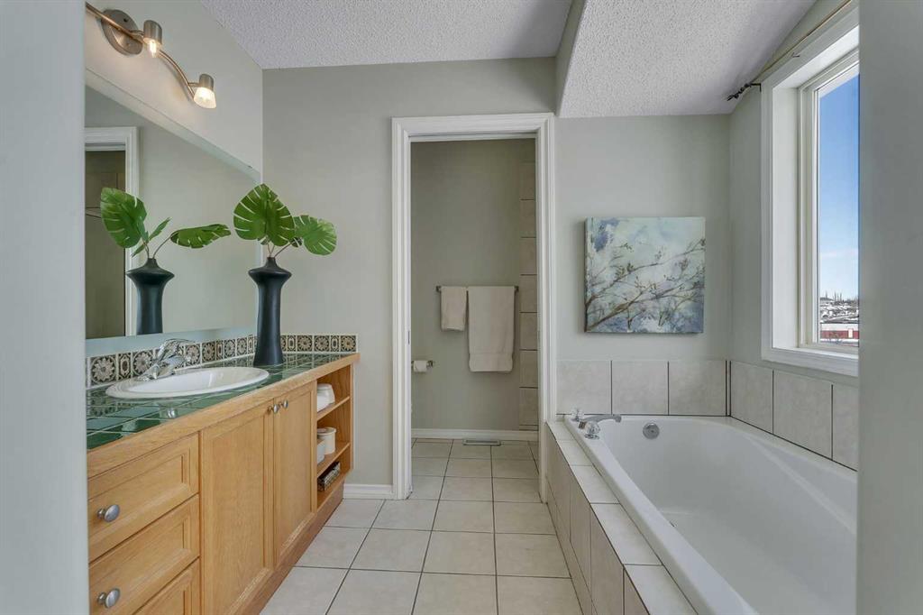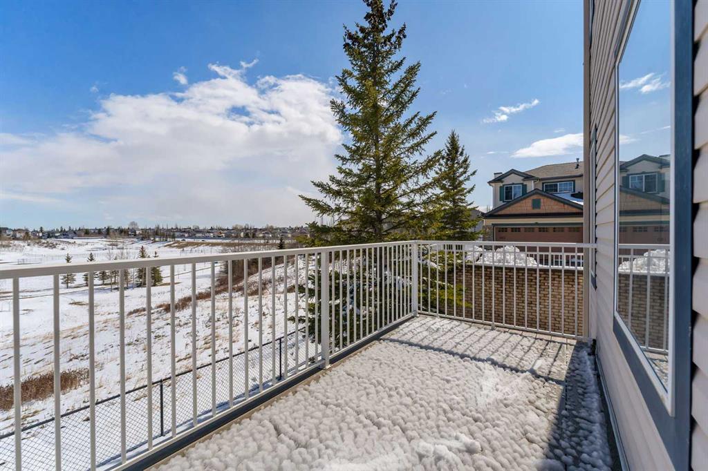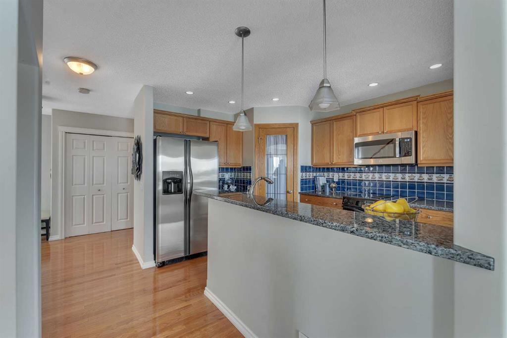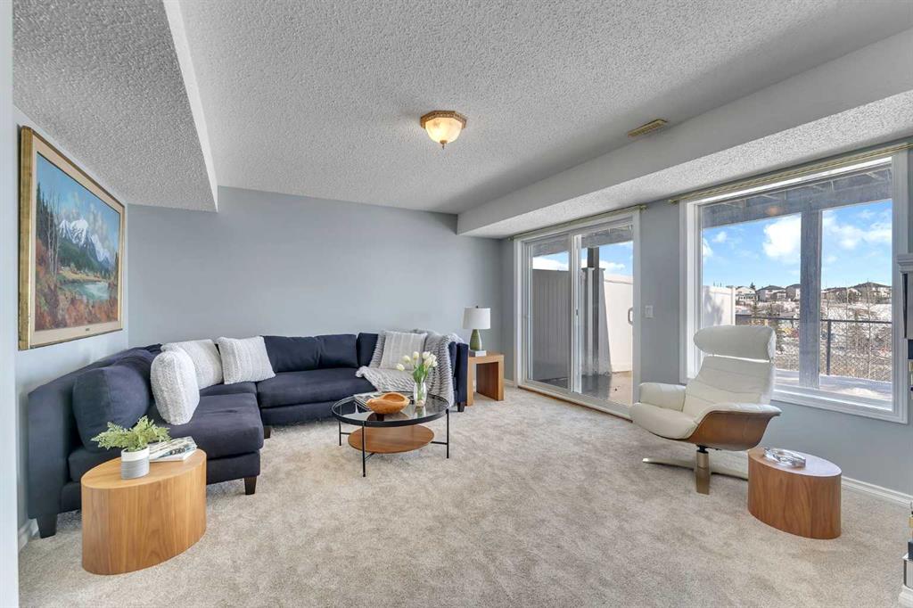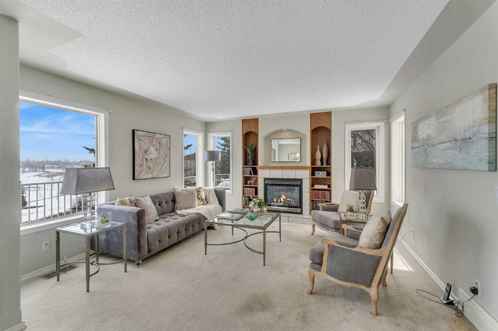 OPEN HOUSE THIS SATURDAY APRIL 25 FROM 1-3 PM! Exceptionally rare opportunity to own an AIR-CONDITIONED END UNIT townhome with an OVERSIZED DOUBLE GARAGE (24X19). and a WALKOUT basement! This lovely property sits atop the ridge and offers UNOBSTRUCTED VIEWS of the park beyond. With a fully finished WALKOUT basement, the NATURAL LIGHT is simply spectacular on every level. Inside, you’ll appreciate the solid hardwood floors, and the modern kitchen with stone counters. The spacious dining room has doors that lead to a full width walkout deck. The living room has custom built-ins + a gas fireplace and an abundance of windows. With over 2200 square feet of developed living space, this is a well laid-out design. Upstairs, the primary suite is well appointed with a walk-in closet and a 4 piece ensuite. A second large bedroom with a sitting area is on the opposite end, with UPPER LAUNDRY, and a 4 piece bath completing this level. The basement offers a large rec room with a cozy gas fireplace and sliding doors that lead to a back patio. A 3rd room and a 3 piece bath finish off the basement. The backyard is fenced with a green space and access to the park beyond. This is a well run complex with a reserve fund over $800,000 as of February 2026. Pet-friendly complex, subject to Board approval. Any replacement of exterior windows or doors are the responsibility of the corporation. Replacement is slated for 2027 and 2028 according to the reserve fund. Condo fees are $389.02/month. Available for immediate occupancy. This is by far the best location in the complex!
