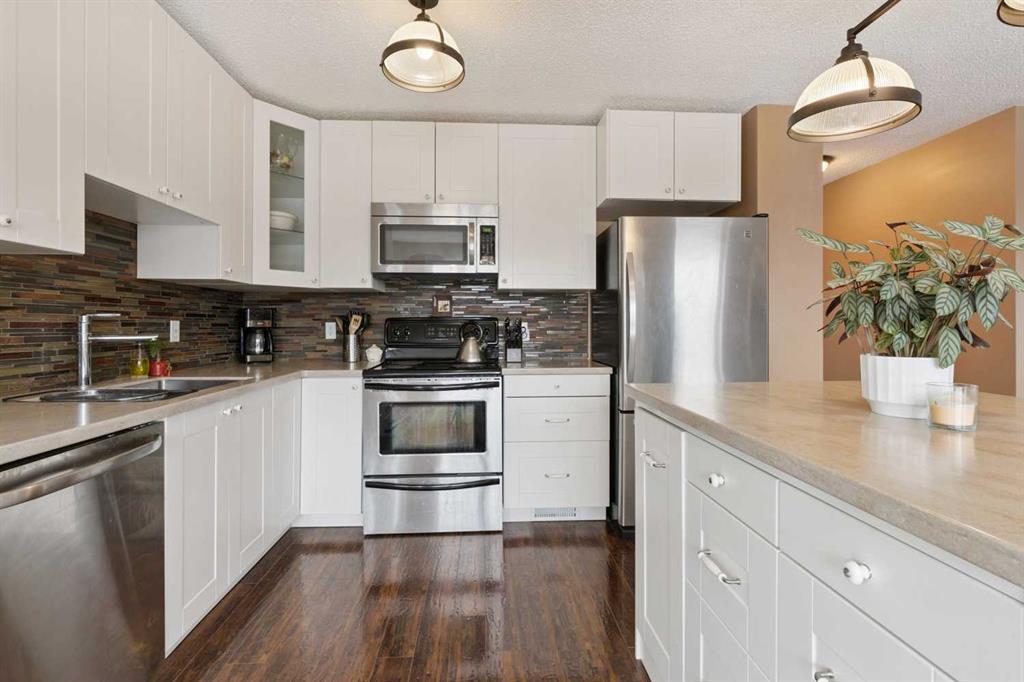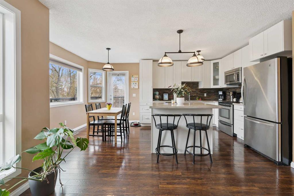 Charming family home in a quiet cul-de-sac, close to Okotoks Recreation Centre. This recently renovated home features a walkout basement with easy potential for an illegal suite; perfect for a mortgage helper or multigenerational living. The main floor features a bright and inviting living room with large windows, lots of space for entertaining and access to the upper deck. The kitchen has newer cabinets and adjoins the dining area. The primary bedroom has a full ensuite and walk-in closet. The second bathroom on the main floor is also a 4 piece and the hallway closet is wired and plumbed for a stacked washer/dryer. The lower south facing deck is great for a sunny morning coffee; with access from the living area in the walkout basement. The lower level has a separate entrance, bathroom, two bedrooms, kitchenette and dining area and there is also a washer and dryer. The large back yard has mature trees and lush greenery. The shingles, eaves troughs, soffits and all windows were replaced in 2025. The furnace and hot water tank were replaced in 2018. Don’t miss this opportunity to own this fantastic home in the heart of Okotoks.