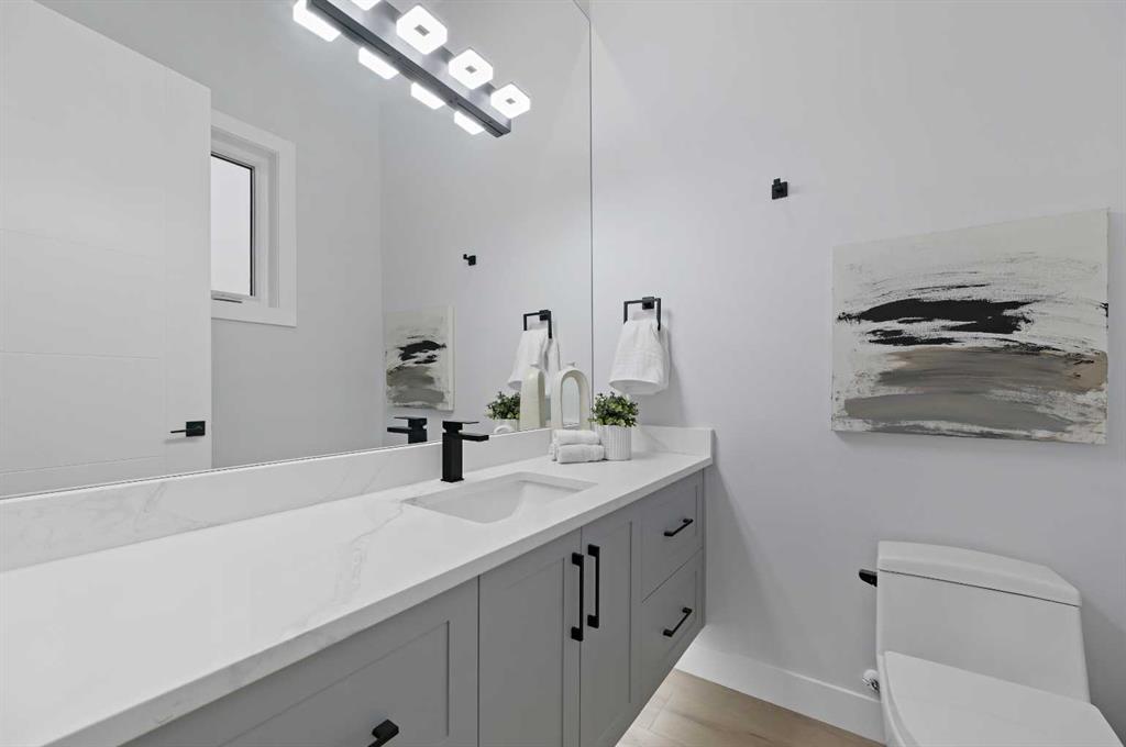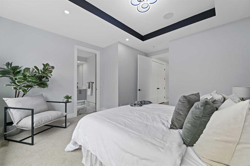 Welcome to 107 Hartford Road NW – a stunning brand-new executive home offering over 2,800 sq ft of beautifully designed living space in the heart of Highwood. Set on a quiet, tree-lined street, this two-storey modern masterpiece boasts exceptional curb appeal with stone, Hardie siding, and Smartboard accents. Step inside to discover a very bright and open floorplan with extensive upgrades throughout—a home that truly must be seen to fully appreciate the quality craftsmanship and detailed finishes that went into this custom build. The main level features 10’ ceilings, a dedicated study/work desk, a spacious dining area, and a dream kitchen with a quartz waterfall island, KitchenAid built-in appliances, a 36” gas cooktop, and designer finishes throughout. The cozy living area includes a dramatic tiled fireplace wall and opens via a sliding patio door to your fully landscaped yard—perfect for summer entertaining.