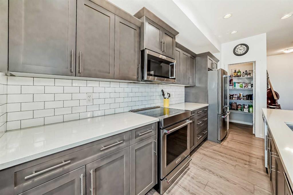 The bright and spacious open concept main floor showcases quartz countertops, stainless steel appliances, an induction cooktop, and a large walk in pantry , ideal for both everyday living and entertaining. Numerous thoughtful upgrades throughout (full list available upon request) enhance both style and functionality. Select windows are outfitted with remote-controlled blinds for added convenience.