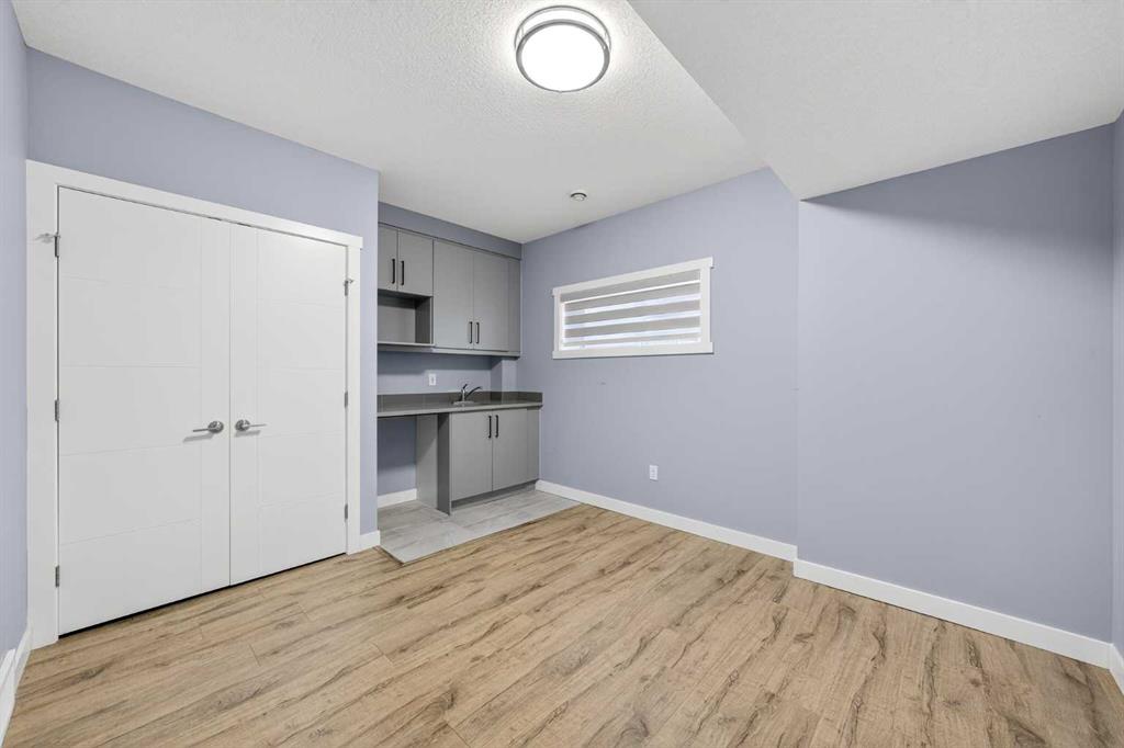 The fully finished Walkout Basement extends your living space with a spacious Rec Room and a wet bar finished with quartz countertops and custom cabinetry. A Bedroom with built-in counter, sink, and cabinetry (originally designed as a nanny suite) can easily accommodate a microwave and mini fridge. This level is completed with a full Bath, Den, and additional Laundry, while a separate side entry with patio pathway provides private access. It is easily be converted into a legal suite with the proper building permit.Â