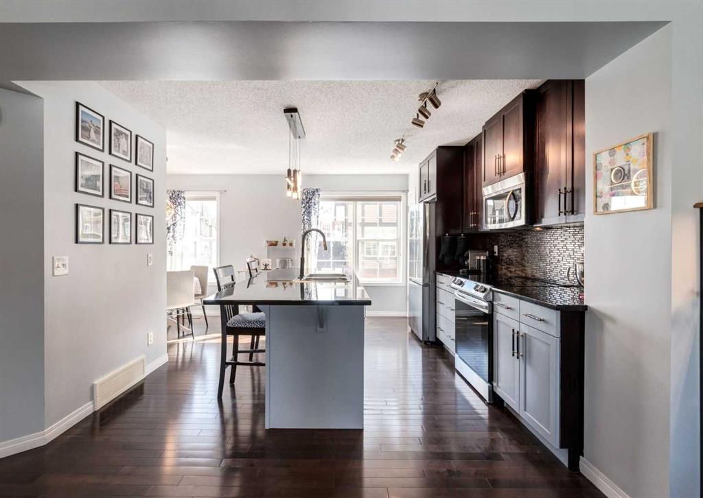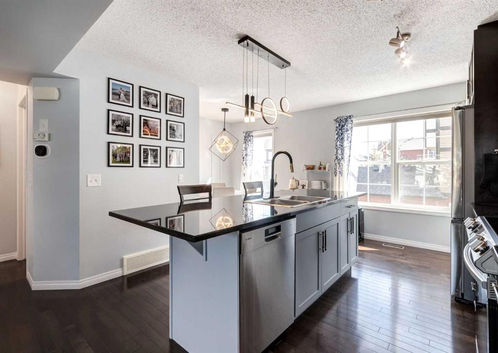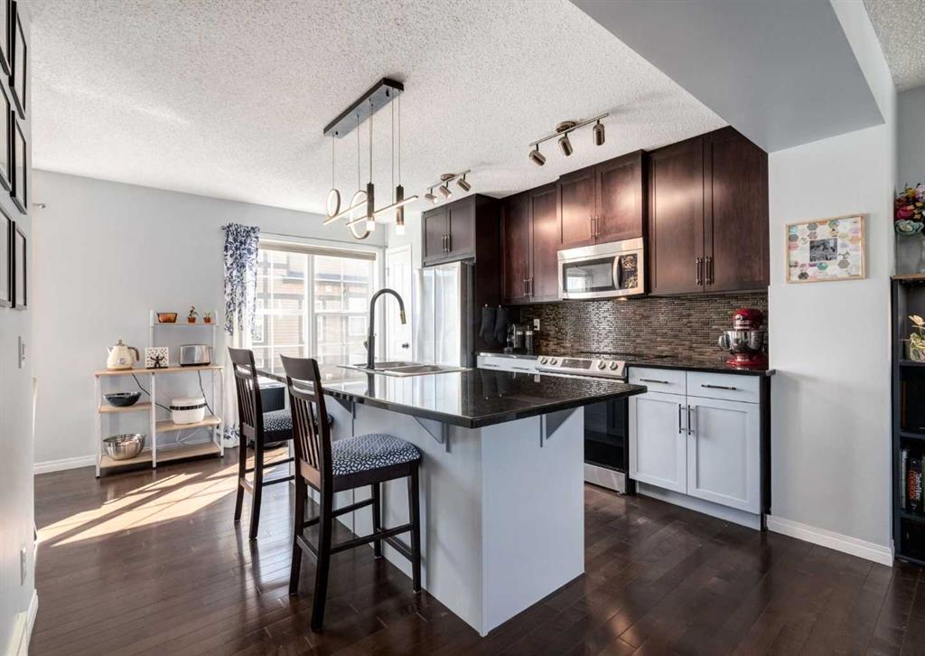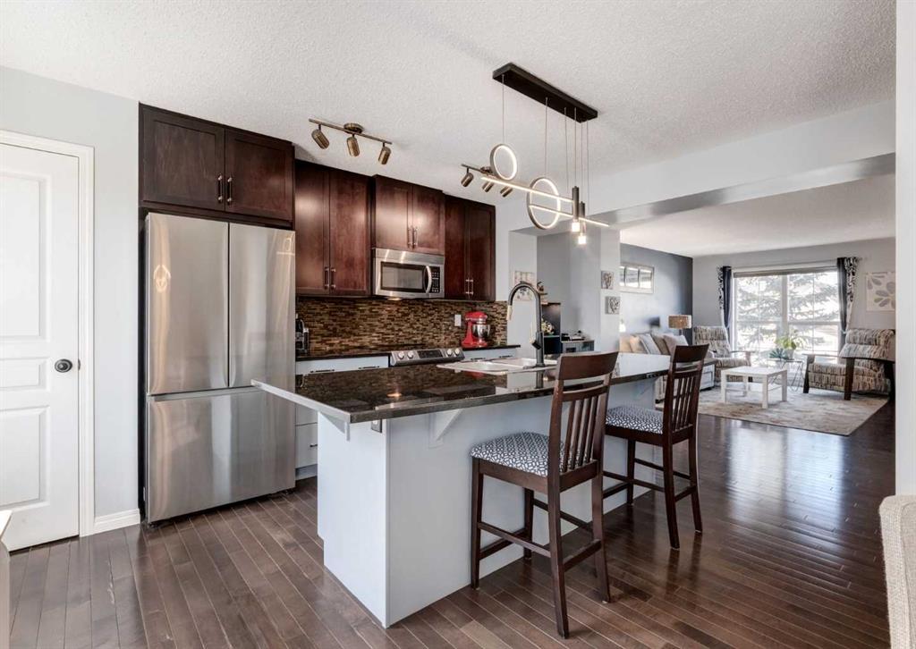 ** Open House Saturday April 04, 12-3pm ** AMAZING VALUE! This beautiful home in the highly sought after family community of NEW BRIGHTON is located in the exceptionally well run MOSAIC MOTIF complex, which features a HEALTHY RESERVE FUND. This VERY WELL MAINTAINED residence offers a GREAT LAYOUT and features a spacious open concept main floor accented by HARDWOOD FLOORING and an abundance of NATURAL LIGHT from OVERSIZED WINDOWS. The kitchen is equipped with SLEEK GRANITE COUNTERTOPS, a LARGE CENTRE ISLAND, and STAINLESS STEEL APPLIANCES. The DINING AREA is conveniently located ADJACENT TO THE KITCHEN, providing a perfect space for family meals. The inviting living room includes a custom tiled ELECTRIC FIREPLACE, and you can step outside to a private FENCED PATIO perfect for summer evenings and OUTDOOR BARBECUES. This property features CENTRAL AIR CONDITIONING and a BRAND NEW HOT WATER TANK both replaced in 2024. The upper level features an OPEN SPACE OFFICE AREA at the landing and a DUAL PRIMARY SUITE layout, where both generous bedrooms offer their own PRIVATE ENSUITE BATHROOM and a spacious WALK-IN CLOSET. The LOWER LEVEL includes a CONVENIENT LAUNDRY and STORAGE AREA with NEWER FLOORING, plus direct access to your DOUBLE ATTACHED GARAGE. This property is VERY CLOSE to multiple schools including DR. MARTHA COHEN and ST. ISABELLA ELEMENTARY. Residents enjoy an UNBEATABLE LIFESTYLE at the NEW BRIGHTON CLUB featuring 6,500 SQ. FT. of incredible AMENITIES including tennis courts, basketball courts, a splash park, and a hockey rink. Nature lovers will appreciate the COMMUNITY POND and endless pathways for the ultimate family lifestyle. This is a PET FRIENDLY complex. This development also offers VISITOR PARKING. Close to SOUTHTRAIL CROSSING and MCKENZIE TOWNE shopping, this home offers effortless commuting with immediate access to 52 STREET, STONEY TRAIL, and DEERFOOT TRAIL! Call today for your private viewing.