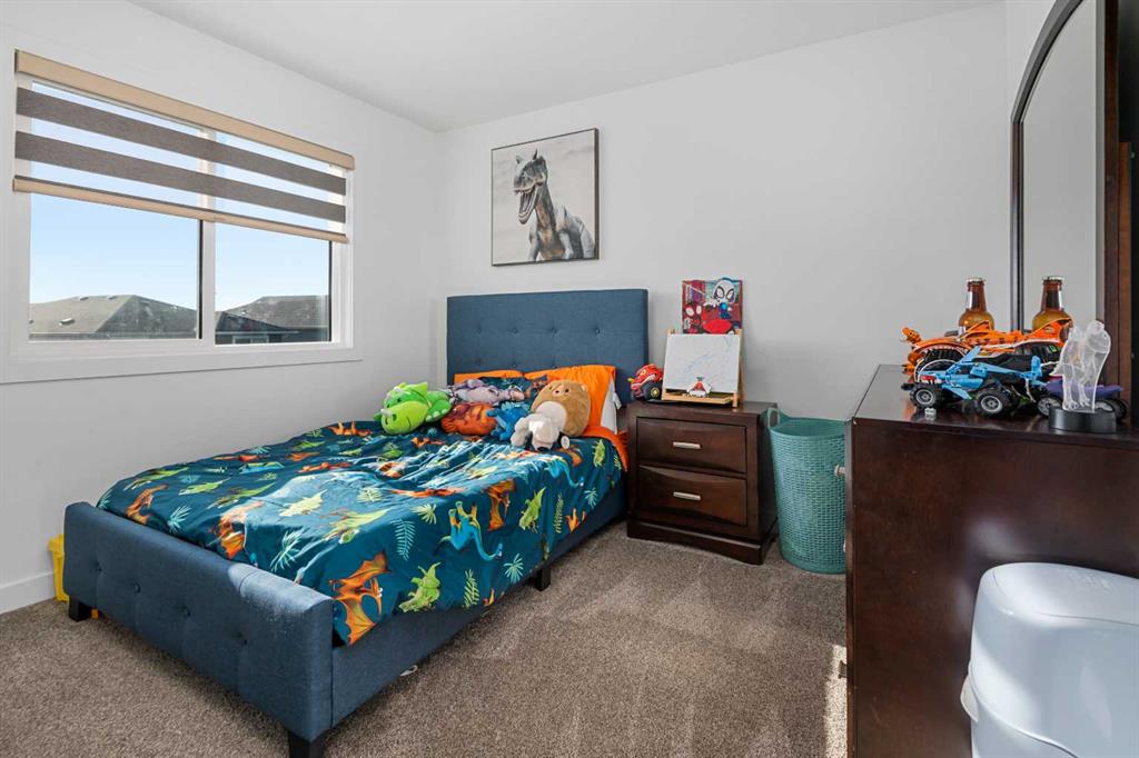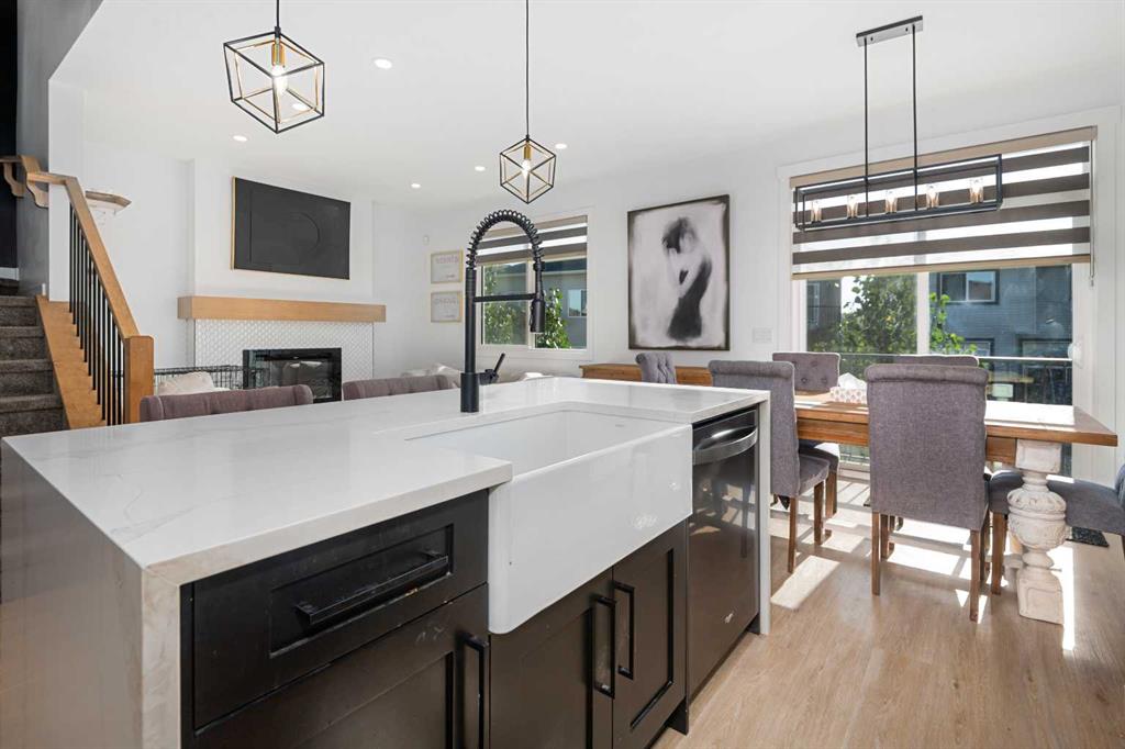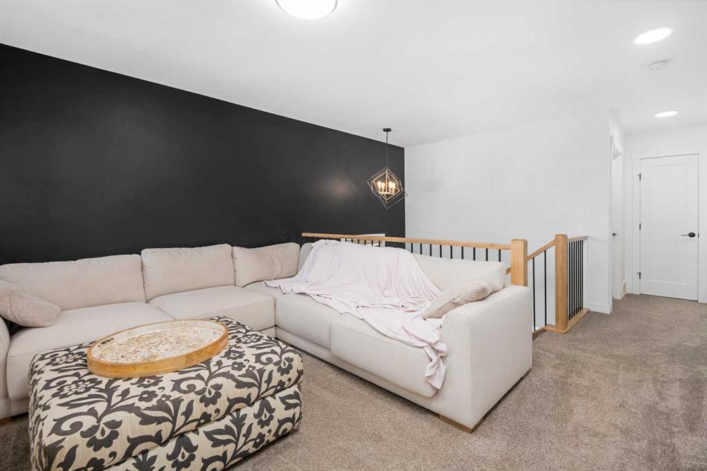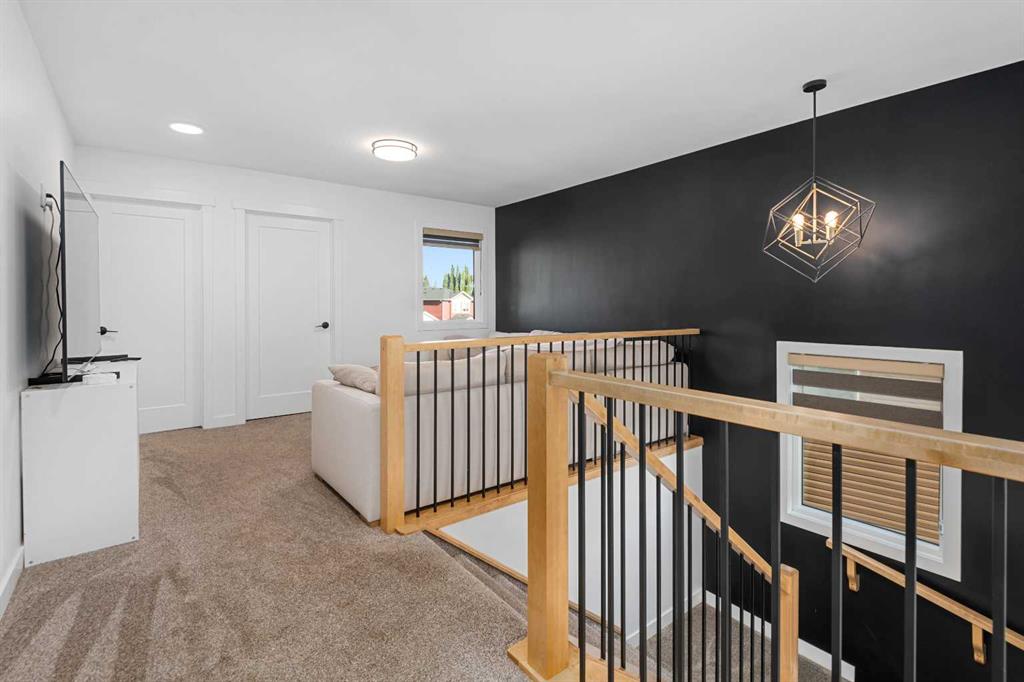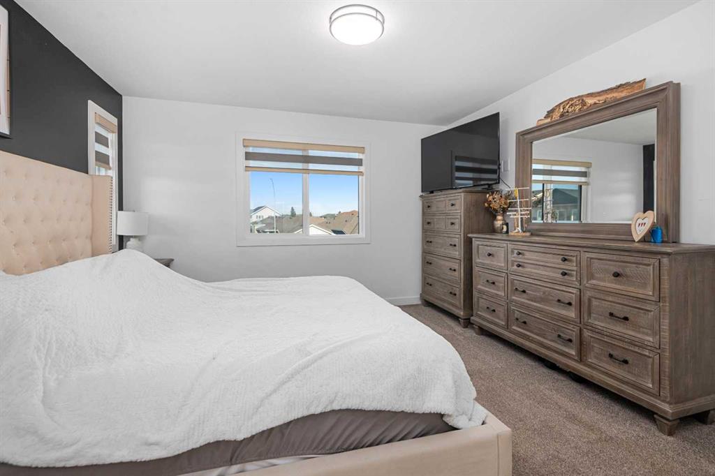 MASSIVE PIE LOT – PREMIUM CUSTOM UPGRADES – NEARLY NEW – PEACEFUL QUIET NEIGHBOURHOOD. Now available in one of Crossfield’s most established and peaceful neighborhoods, this exceptional custom home built in 2022 sits on a generous pie-shaped lot and blends high-end modern features with thoughtful family-friendly design. From the moment you enter, you’ll notice the abundance of natural light and the expansive feel created by 9-foot ceilings and stylish vinyl plank flooring throughout the main floor. At the heart of the home is a stunning chef’s kitchen boasting waterfall quartz countertops on both sides of the island, a large sink, ample cabinetry, and upgraded Whirlpool appliances. The expansive pantry offers practical storage, while upgraded lighting and plumbing fixtures elevate the entire space with a sleek, contemporary finish. The adjoining living area features a built-in electric fireplace with a tasteful mantle, creating the perfect area for relaxing or entertaining. Nearby, the spacious front entry closet, convenient half bath, and access to a double attached garage. Upstairs, you’ll find three generously sized bedrooms and two full bathrooms, including a luxurious primary retreat with heated tile floors, dual sinks, a glass enclosed walk-in tiled shower and a large walk-in closet. A versatile flex room offers the perfect space for a home office, media room, or play area, while a dedicated laundry room offers even more convenience and versatility. The basement, with its three large above-grade windows and tall ceilings, is waiting for your final touch or it makes the perfect hassle free storage area. Outdoors, the fully fenced yard—finished with premium vinyl fencing is expertly landscaped and includes a dog run directly accessible from the deck, and wiring ready for a hot tub. Backing onto tranquil green space and scenic walking paths, this backyard offers privacy and a true connection to nature. Central air conditioning and an upgraded blinds package help keep you cool during the hot summer and add even more appeal. Close to shopping, restaurants, school and all amenities Crossfield has to offer and With this many upgrades, this beautiful move in ready home wont last long. Book your private viewing today!