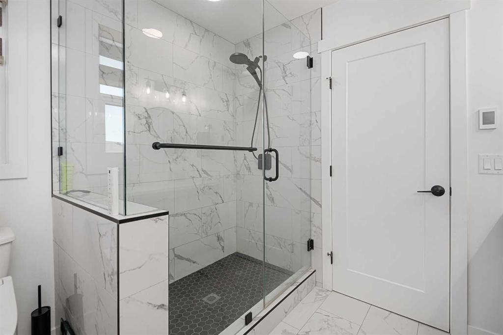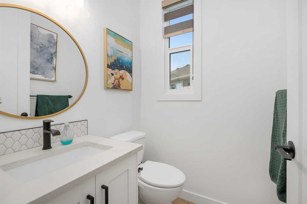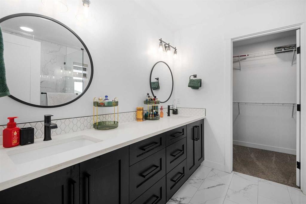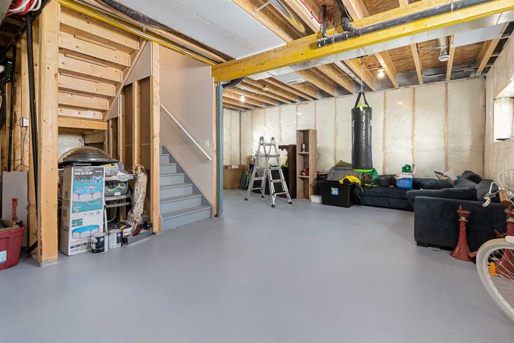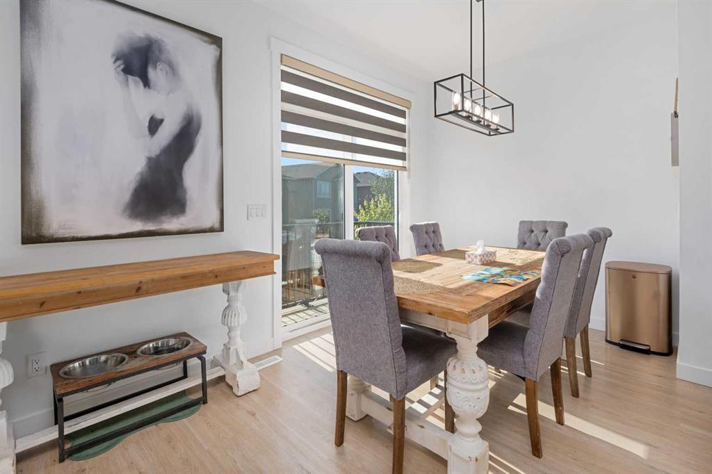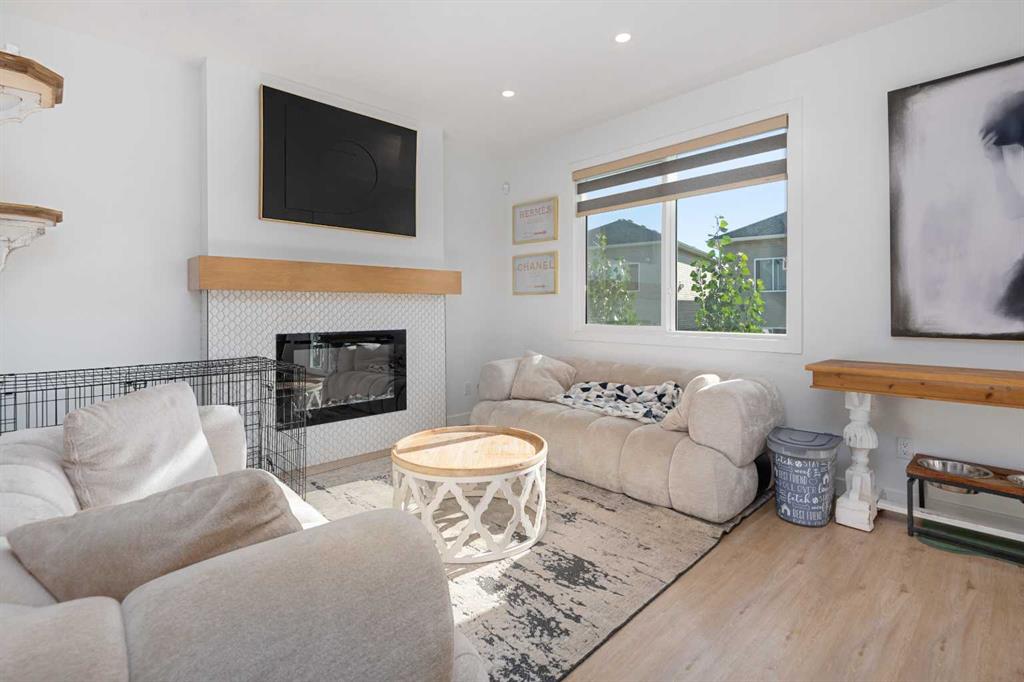 MASSIVE PIE LOT – PREMIUM CUSTOM UPGRADES – NEARLY NEW – PEACEFUL QUIET NEIGHBOURHOOD. Now available in one of Crossfield’s most established and peaceful neighborhoods, this exceptional custom home built in 2022 sits on a generous pie-shaped lot and blends high-end modern features with thoughtful family-friendly design. From the moment you enter, you’ll notice the abundance of natural light and the expansive feel created by 9-foot ceilings and stylish vinyl plank flooring throughout the main floor. At the heart of the home is a stunning chef’s kitchen boasting waterfall quartz countertops on both sides of the island, a large sink, ample cabinetry, and upgraded Whirlpool appliances. The expansive pantry offers practical storage, while upgraded lighting and plumbing fixtures elevate the entire space with a sleek, contemporary finish. The adjoining living area features a built-in electric fireplace with a tasteful mantle, creating the perfect area for relaxing or entertaining. Nearby, the spacious front entry closet, convenient half bath, and access to a double attached garage. Upstairs, you’ll find three generously sized bedrooms and two full bathrooms, including a luxurious primary retreat with heated tile floors, dual sinks, a glass enclosed walk-in tiled shower and a large walk-in closet. A versatile flex room offers the perfect space for a home office, media room, or play area, while a dedicated laundry room offers even more convenience and versatility. The basement, with its three large above-grade windows and tall ceilings, is waiting for your final touch or it makes the perfect hassle free storage area. Outdoors, the fully fenced yard—finished with premium vinyl fencing is expertly landscaped and includes a dog run directly accessible from the deck, and wiring ready for a hot tub. Backing onto tranquil green space and scenic walking paths, this backyard offers privacy and a true connection to nature. Central air conditioning and an upgraded blinds package help keep you cool during the hot summer and add even more appeal. Close to shopping, restaurants, school and all amenities Crossfield has to offer and With this many upgrades, this beautiful move in ready home wont last long. Book your private viewing today!