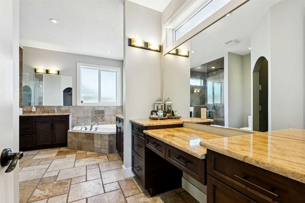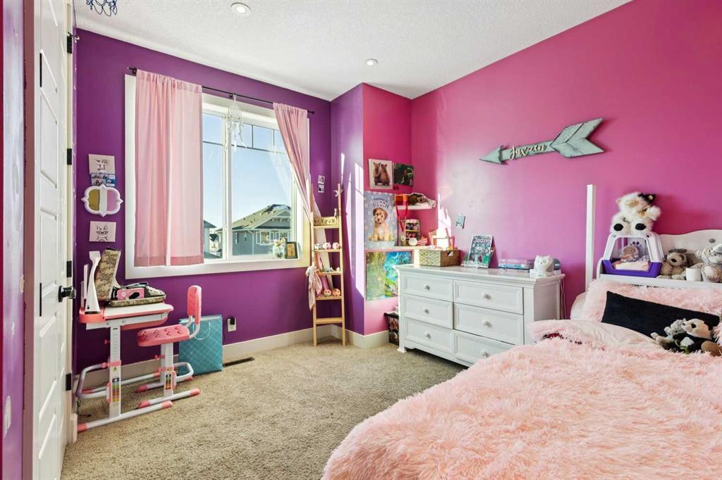 Upstairs, retreat to the large primary bedroom (14’ x 16’) featuring a luxurious 5-piece ensuite with double sinks, a walk-in shower with bench, jacuzzi tub, and a spacious walk-in closet. The secondary bedrooms are all generously sized, making this home ideal for families.