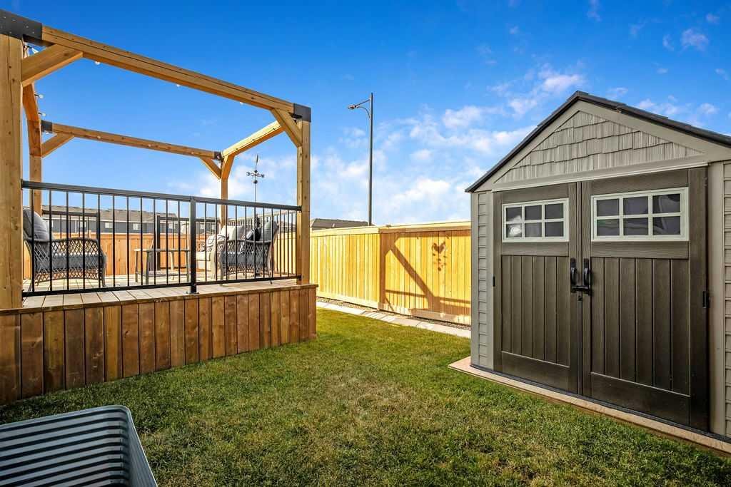 The backyard is fully landscaped and fenced with a deck, gazebo and BBQ gas line.