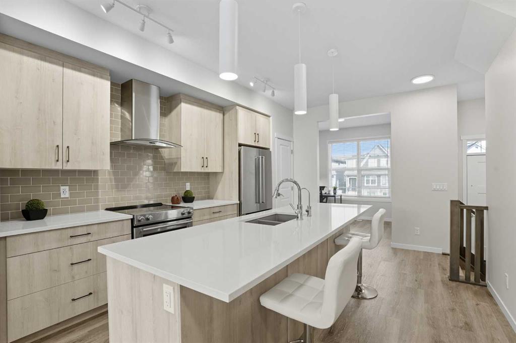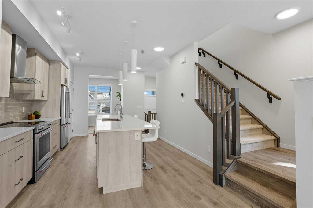 *****JOIN US FOR AN OPEN HOUSE THIS SUNDAY NOVEMBER 16 FROM 1 TO 4 PM. BIGGEST DUPLEX ON THE STREET!***** Welcome to 1075 Mahogany Boulevard SE, a pristine semi-detached home with nearly 1,700 sq. ft. of above-grade living space and a spacious basement offering huge future potential. Located in the sought-after lake community of Mahogany, this property blends contemporary design with family-friendly functionality. The main floor features a bright, OPEN-CONCEPT LAYOUT where expansive windows fill the living, dining, and kitchen areas with natural light. The CHEF-INSPIRED KITCHEN showcases FULL-HEIGHT CABINETRY TO THE CEILING, ELEGANT QUARTZ COUNTERTOPS, UPGRADED STAINLESS APPLIANCES, a SEPARATE HOOD FAN, BUILT-IN MICROWAVE, and a BUILT-IN WATER FILTER at the sink. A VERSATILE DEN/BEDROOM on this level adds flexibility for a HOME OFFICE, GUEST ROOM, or PLAY SPACE. Upstairs, unwind in the PRIMARY SUITE with a STYLISH 4-PIECE ENSUITE, while TWO ADDITIONAL SPACIOUS BEDROOMS share a SLEEK 3-PIECE MAIN BATH. A BONUS ROOM and UPPER-LEVEL LAUNDRY provide extra convenience for busy families. The basement offers 9-FT CEILINGS, TWO LARGE WINDOWS, and ROUGH-IN PLUMBING for a future bathroom, creating endless possibilities for a SUITE (subject to approvals), GYM, MEDIA ROOM, or EXTRA LIVING SPACE. A REAR DECK extends the living area outdoors. Enjoy year-round recreation with Mahogany’s LAKE, BEACHES, PARKS, TRAILS, SHOPPING, DINING, and SCHOOLS all close by. Move-in ready and impeccably maintained, this home delivers SPACE, STYLE, and a PRIME LOCATION, schedule your showing today.