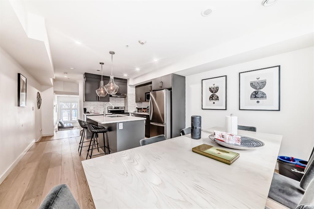 Welcome to this modern 3-storey townhouse in the vibrant inner-city community of Capitol Hill, Calgary. Featuring a blend of hardwood flooring, ceramic tiles, and plush carpet, this home boasts high ceilings on every level, creating a spacious and airy feel throughout. The main floor offers a cozy living room, an open concept kitchen ample cabinet space, upgraded stainless steel appliances, and elegant quartz countertops. Enjoy dining in the adjoining area and easy access to a private enclosed patio off the kitchen area. Ascending the stairs to the second floor, you’ll find a comfortable family room and the luxurious primary bedroom and a stunning 4-piece walk-in shower bathroom, fully tiled to the ceiling. The third floor features two generously sized bedrooms, even larger than the primary bedroom with ensuite 3-piece bathroom, and a laundry room for added convenience. This townhouse comes with a titled underground parking, with a private access door directly between the parkade and the basement of the unit, which also has ample space for storage. The property is beautifully landscaped, and offers a great curb appeal. Enjoy the convenience of nearby amenities, with numerous restaurants and shopping options within a 5-minute drive. Key locations such as Calgary City Centre (12 mins), Foothills Medical Centre (7min), and various schools including Capitol Hill School (1 min), Branston School (2min), and William Aberhart High School (3 min), University of Calgary(7 min) are all easily accessible. Public transit is a breeze with the nearest bus stop just a minute away and the LRT station only 4 minutes away. Enjoy outdoor activities at Banff Trail Park (2min) and the nearby West Confederation Park(3min) providing access to the Calgary Pathway System for walking, biking or running & Golf Course. Don’t miss out on this exceptional opportunity in the heart of Inner City Calgary! Book your showing today!!