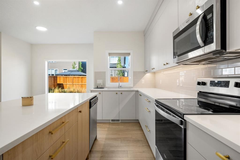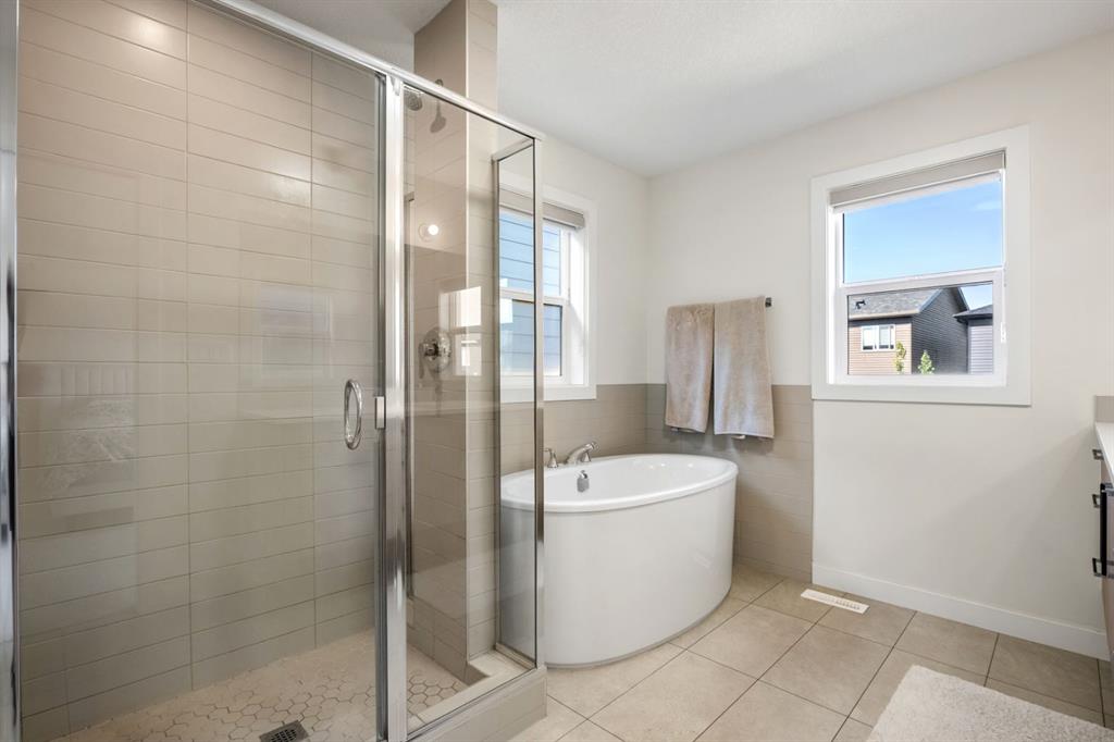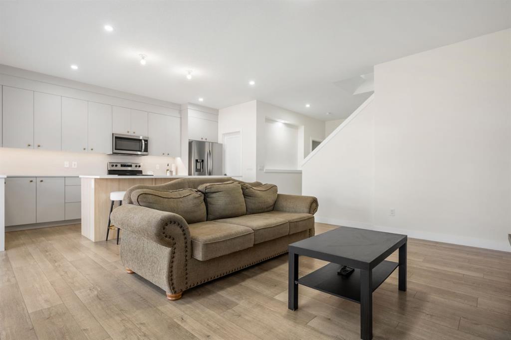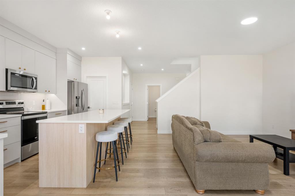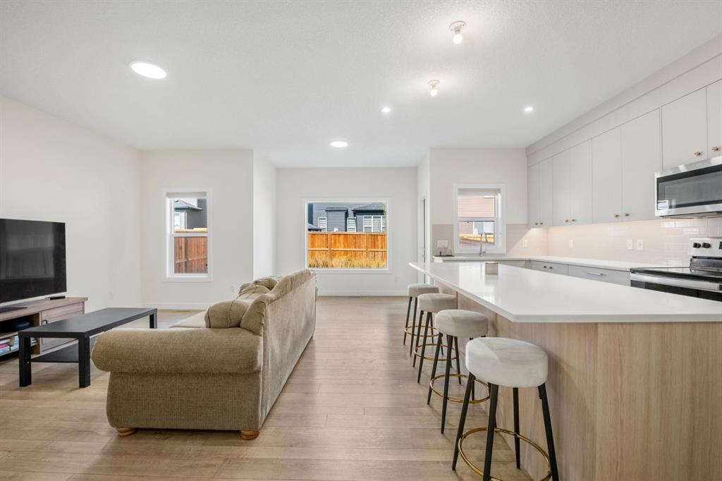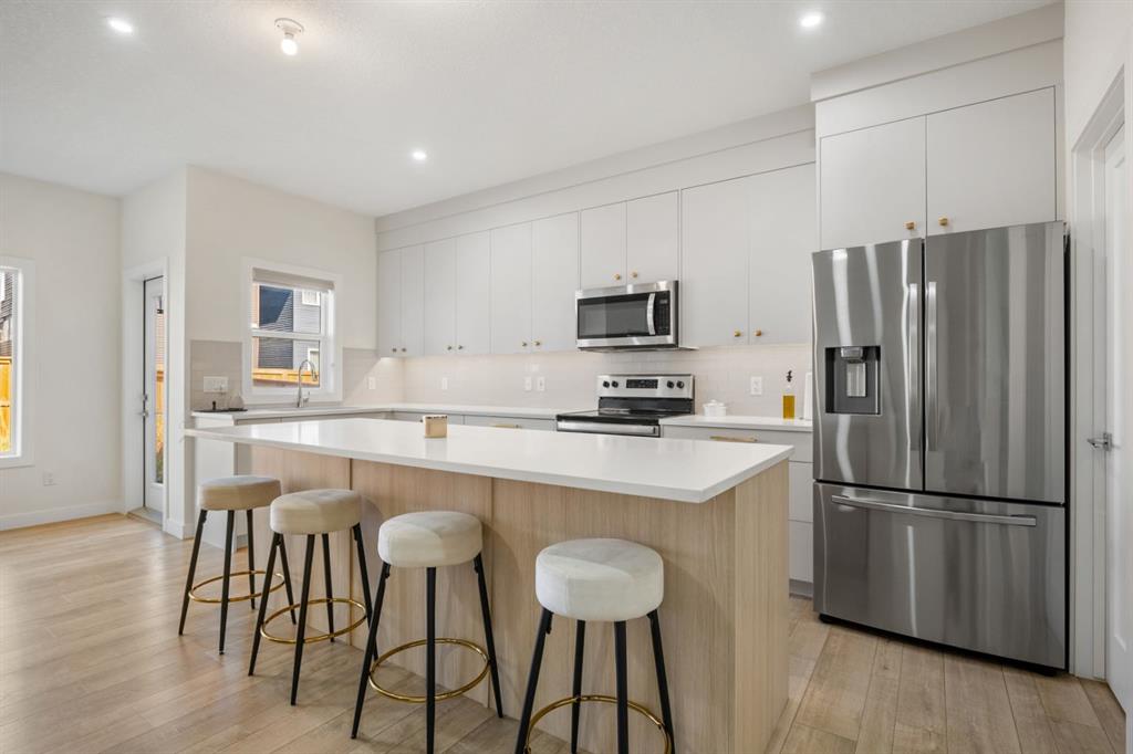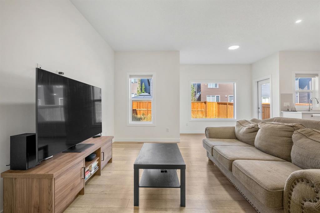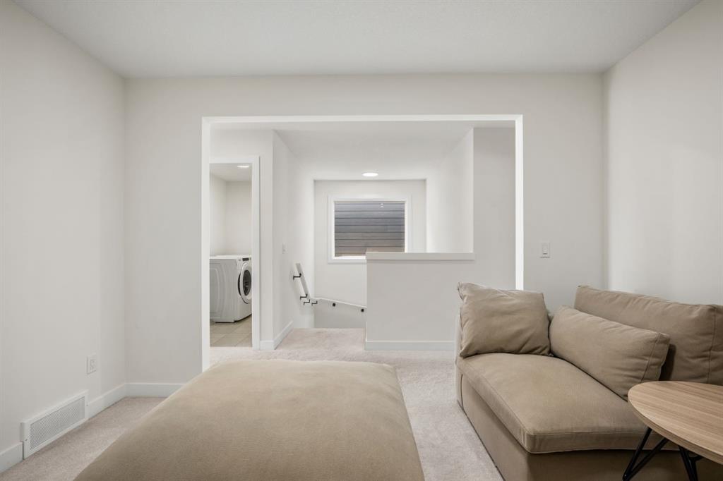 Welcome to this spacious and modern home located in the highly sought after NW community of Carrington. Boasting over 2,000sqft of developed living space, this home is designed for modern living with a smart, functional layout and impressive upgrades throughout. From the moment you enter, you’re welcomed by a bright foyer area that opens up into a bright and inviting open concept layout main floor with vinyl plank flooring throughout.The show stopping kitchen is complete with an oversized island, sleek stainless steel appliances, endless cabinets & counter space, under cabinet lighting, and a walk-through pantry perfect for keeping life organized. The kitchen flows into your spacious living and dining area, creating the ultimate hub for entertaining and family gatherings. Off to the side of the dining room is a door that leads you to your fully fenced backyard. Upstairs, the central bonus room steals the spotlight—an ideal space for movie nights, playtime, or relaxation while creating a natural separation between the primary retreat and the two additional bedrooms. The primary suite is a true retreat featuring a spa like 4 piece ensuite with a soaker tub, glass shower, and walk-in closet. Two more generous sized bedrooms, a 4 piece bath, and convenient upper floor laundry complete this level. The unfinished basement offers incredible potential with a separate side entrance, bathroom rough-in, and open layout ready for your future development—whether it’s a home gym, rec room, bedroom and additional living space. Located just steps from scenic ponds, walking paths, parks, and everyday amenities, with quick access to major routes for an easy commute—this home perfectly blends comfort, style, and convenience. Move in and start enjoying Carrington right away!