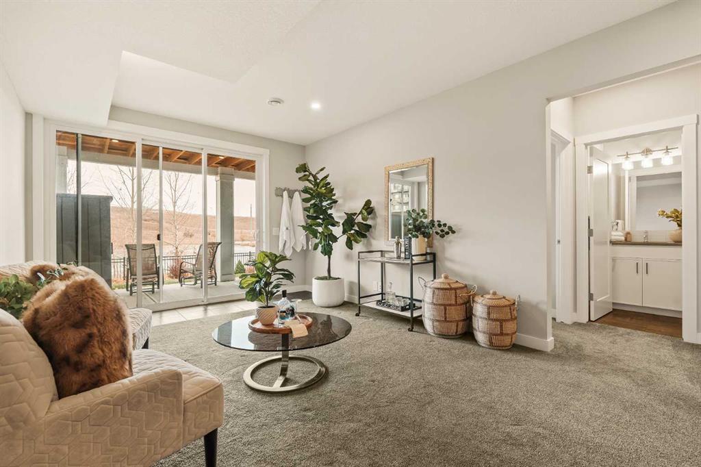 **OPEN HOUSE – SUNDAY, NOVEMBER 9th FROM 1:00-3:00** Welcome to this pristine, original-owner walkout bungalow perfectly positioned on a serene pond in the heart of Riverstone. Thoughtfully designed and impeccably maintained, this residence offers nearly 2,500 sq. ft. of beautifully developed living space – ideal for those seeking the comforts of bungalow living without compromise. Step inside to soaring 10’ ceilings, 8’ doors, and an abundance of natural light that floods the open-concept main floor. The timeless white kitchen serves as the heart of the home, featuring elegant quartz countertops, a designer herringbone backsplash, a soft grey accent island, and a full suite of premium stainless-steel appliances including a gas range, built-in microwave, and chimney hood fan. A walk-through pantry connects seamlessly to the mudroom, providing exceptional everyday functionality. The dining area comfortably accommodates large gatherings and opens to the inviting great room, where a wall of patio doors frames tranquil water views. The expansive upper balcony spans the width of the home making it the the perfect setting to enjoy morning coffee or evening sunsets over the pond. The primary suite is a true retreat, complete with pond views, dual vanities, a fully tiled walk-in shower, and a generous walk-in closet. A spacious den at the front of the home offers versatility as an office, reading room, or secondary bedroom. Completing the main level is a beautifully appointed powder room, built-in storage with floating shelves, and a full laundry room – allowing for single-level living at its finest. Descending the elegant maple and iron spindle staircase, you’ll find a bright and airy walkout level with 9’ ceilings and 8’ doors. The expansive recreation area offers ample room for a TV lounge, fitness space, and games area, while the second bedroom and full 4-piece bathroom create an ideal space for guests. Step outside to a fully covered lower patio – a peaceful and private outdoor living area perfect for lounging or adding a hot tub. The professionally landscaped 136’ deep lot strikes the perfect balance between beauty and low maintenance. Enjoy endless pond and greenspace views year-round without the upkeep of a large yard. A double attached garage, central air conditioning, and exceptional pride of ownership complete this rare offering. Detached bungalows in Riverstone are few and far between – and ones this immaculate, turnkey, and well-priced are nearly impossible to find. Don’t miss your opportunity to call this exceptional property home.