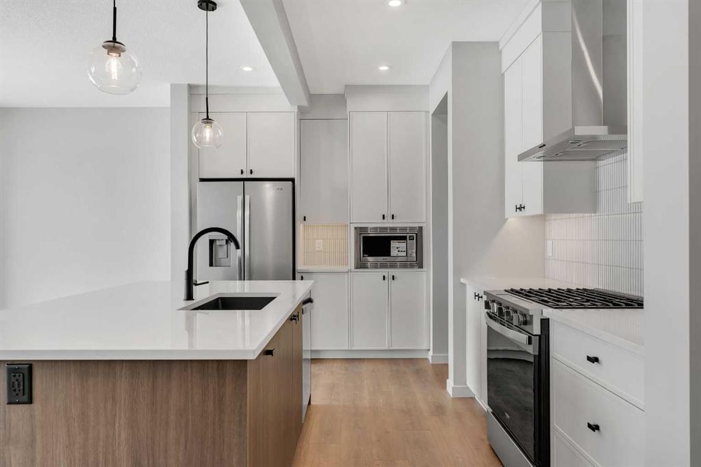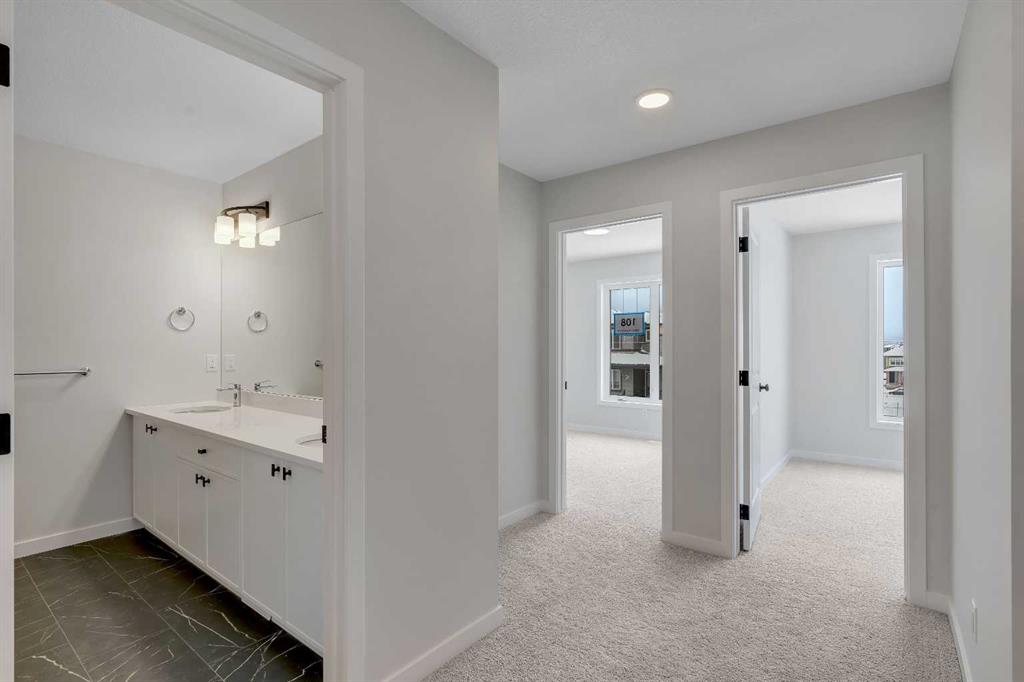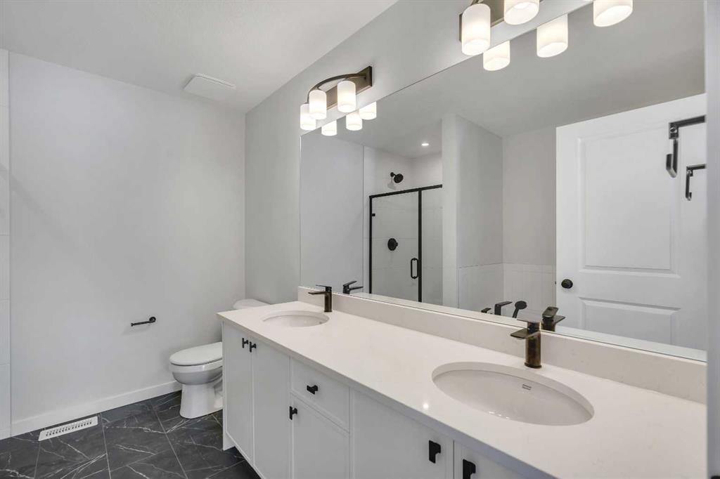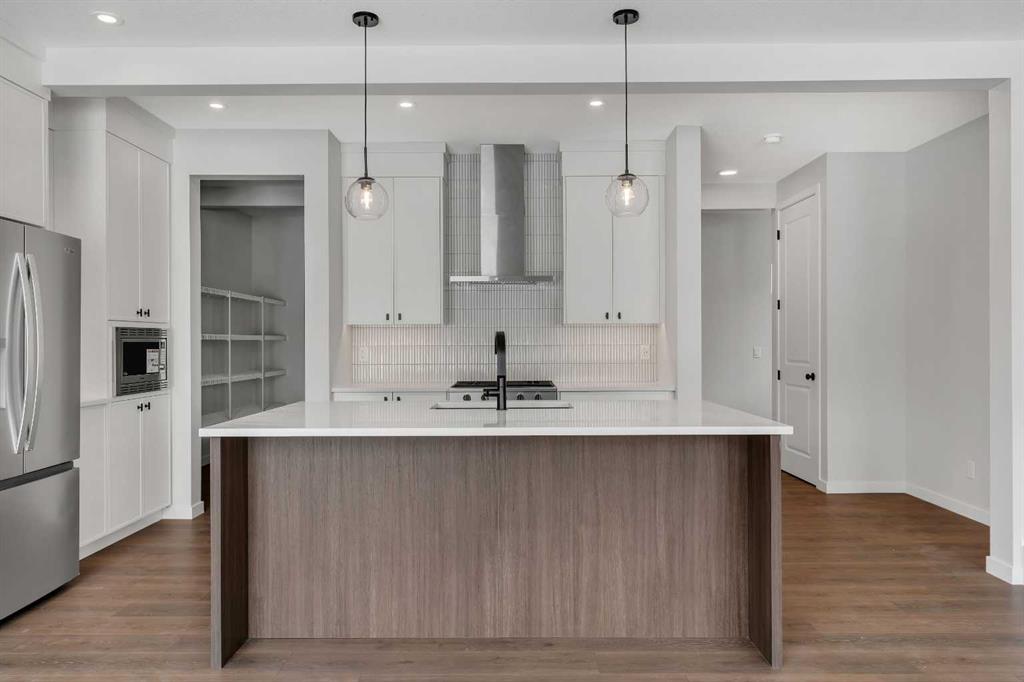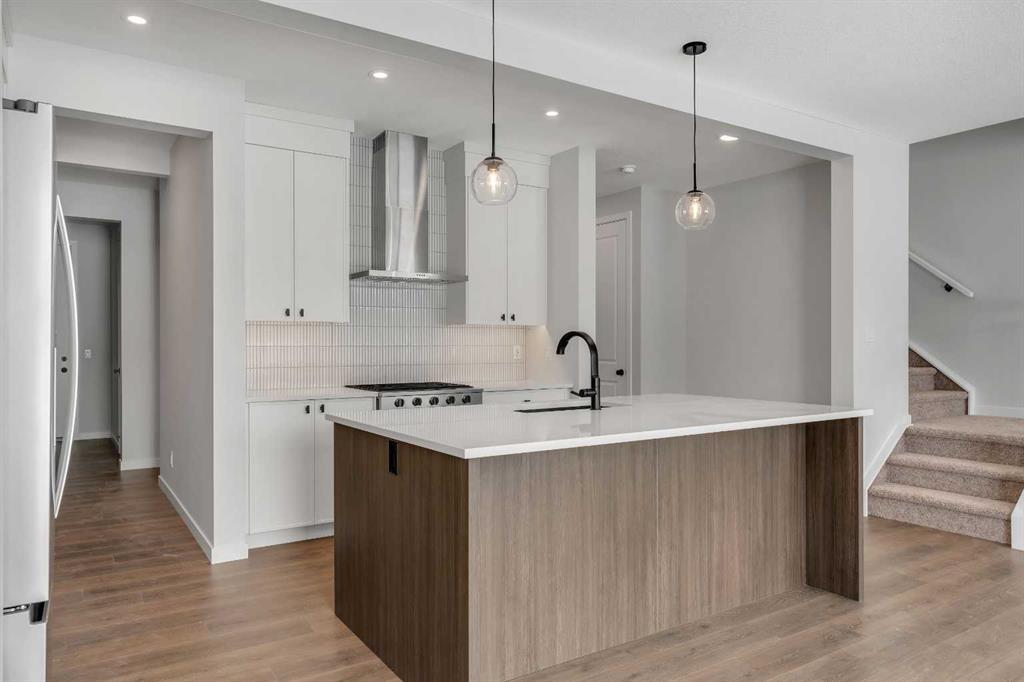 Welcome to 108 Creekview Manor SW. Built by repeated Award-Winning, Baywest Homes. Perfectly positioned just one home away from a playground and only steps from a stunning natural reserve and pathway system, this exceptional property blends location, luxury, and thoughtful design. From the moment you arrive, the home’s impressive 26′ width sets it apart, offering a spaciousness you can feel. This wider design allows for a generous 21′ x 21′ garage, perfect for vehicles, hobbies, and all the gear that comes with an active lifestyle. With a side entry and basement plumbing rough-ins, the lower level is a blank canvas ready for future possibilities—whether that’s a suite, a studio, or the entertainment space you’ve always imagined. A secondary suite would be subject to approval and permitting by the city/municipality. Step inside, and the main floor welcomes you with warmth and flexibility. A main-floor bedroom with a full 3-piece bath is ready for guests, family, or the perfect work-from-home sanctuary. Hosting will feel effortless with a spacious rear deck ideal for summer dinners. At the heart of the home lies a kitchen crafted to inspire. The two-toned cabinetry, chimney hood fan, and microwave tower create a beautifully cohesive space, while quartz countertops, under-cabinet lighting, and a 4-bin waste pullout add function to the flair. Cook with confidence using upgraded appliances including a gas range, hidden-control dishwasher, and French door fridge with water, ice, and bottom freezer storage. A large pantry completes this gourmet hub—because every great home starts with a great kitchen. Follow the wood-and-metal railing up to the second floor, where comfort and convenience continue to shine. Here, you’ll find four well-sized bedrooms, including walk-in closets in Bedrooms 2 and 3—a rare and welcome luxury. The bonus room offers space for movie nights, playtime, or cozy unwinding, while the upper laundry room, complete with rough-in for a future sink, makes daily routines feel effortless. Retreat to the primary suite, a calming escape featuring double sinks, a relaxing soaker tub, and a separate shower designed for moments of quiet indulgence. Even the main upstairs bath offers double sinks, ensuring mornings flow smoothly for everyone. Nestled alongside the stunning Sirocco Golf Club, Creekview offers a perfect balance of nature and convenience for those who love life on the greens. For all your shopping needs Township Shopping Centre in nearby Legacy boasts over 50 retailers and services, including popular destinations like Sobeys, Starbucks, Cobs Bread, The Canadian Brewhouse, Winners, and more. Families will appreciate the planned future school site, conveniently located near the community entrance, ensuring a short and safe walk or bike ride for students. Creekview also features numerous parks, playgrounds, and sports fields, offering ample outdoor recreation opportunities for residents of all ages.