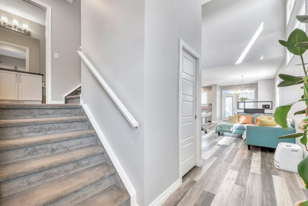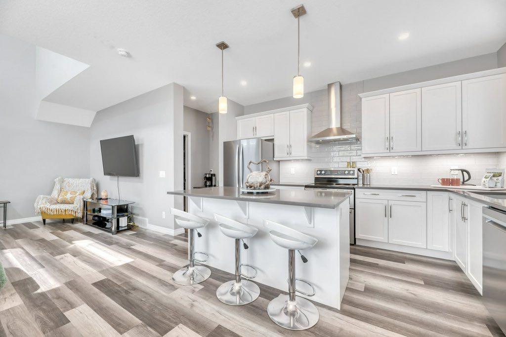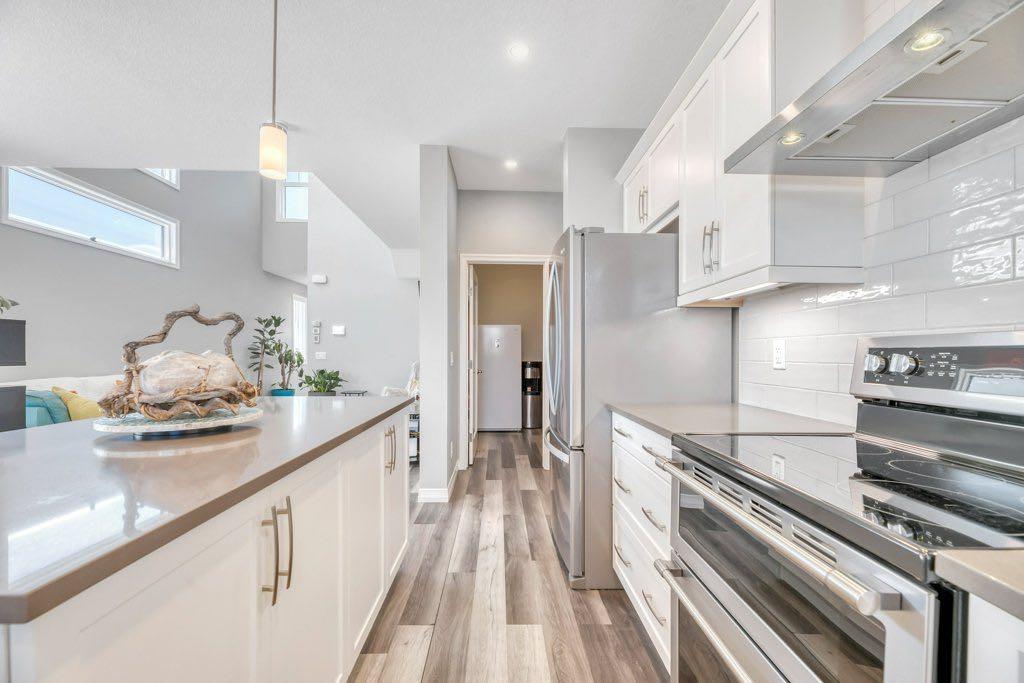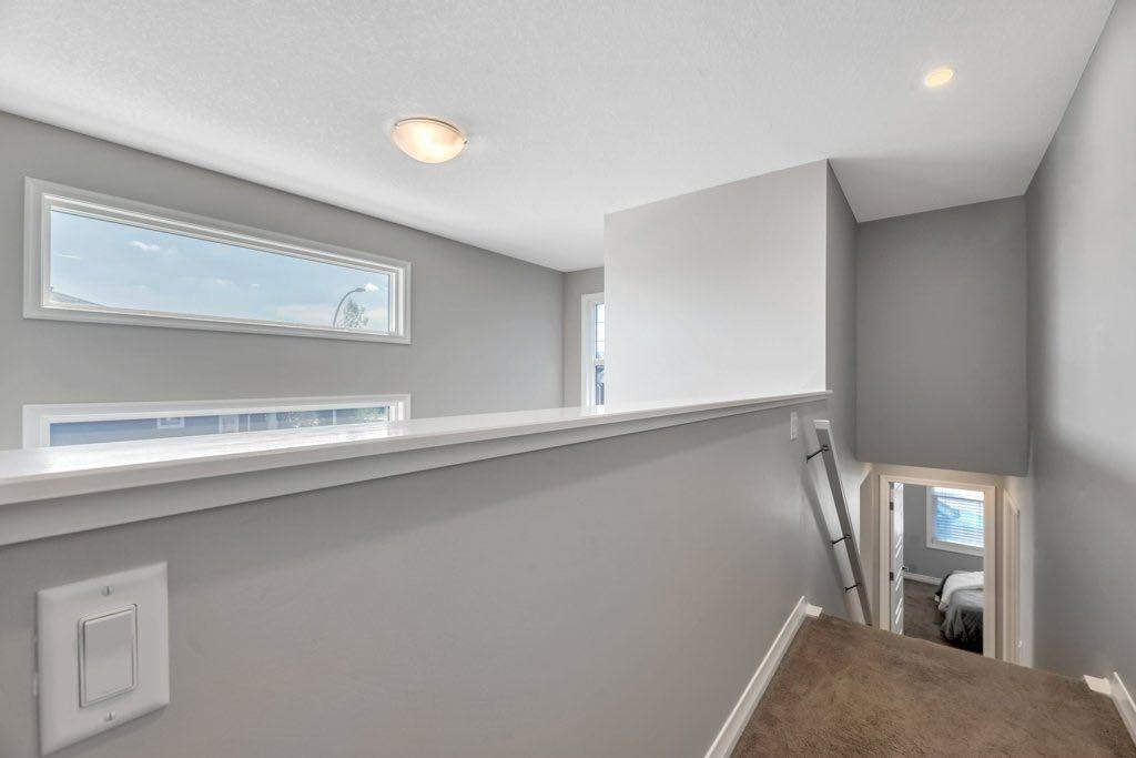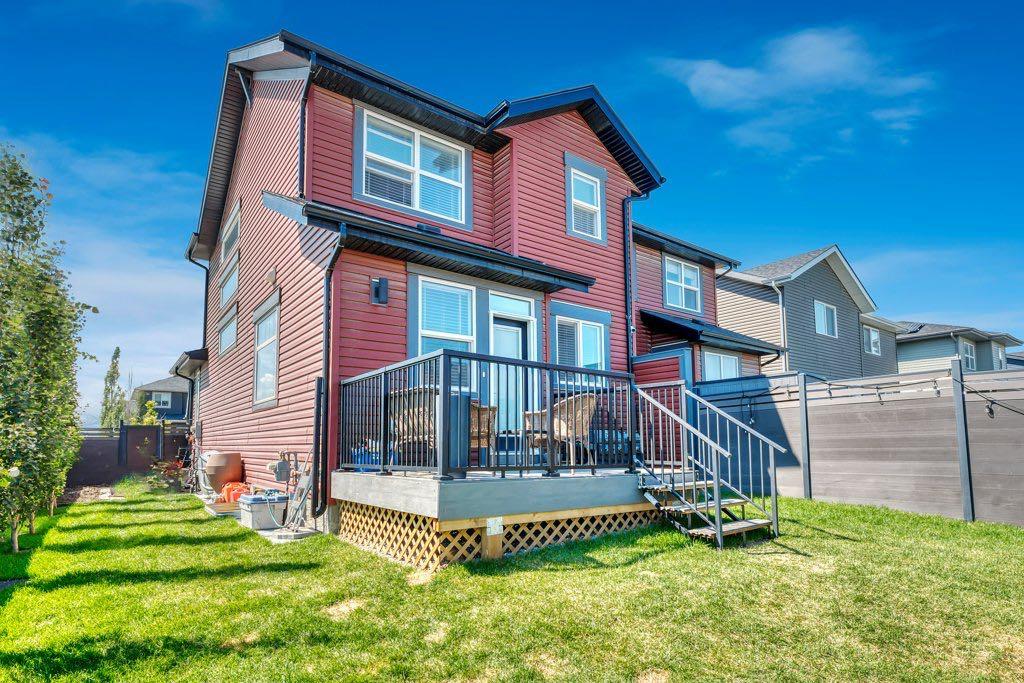 Amazing layout! Fall in love with your new home in the vibrant, family oriented community of Evanston. This unique side by side home offers modern stylish finishes and a super functional layout on a prime corner lot. Striking red siding, contemporary architecture, well maintained landscaping and the coolest weather resistant fence made from bamboo make this property stand out from the crowd. You’ll feel at home right away as you step into the bright and sunny living space with its soaring vaulted ceilings and spacious open concept layout with tons of windows. You’ll love the well planned kitchen with popular white cabinetry, gleaming stainless steel appliances, quartz counters and a centre island with seating for friends and family to gather. A cute little coffee or appliance station leads to your oversized pantry / storage room. The kitchen is also open to the dining area and a back door leads to your deck for easy access for grilling and outdoor dining. 2 more closets on this level provide ample storage for outer wear and other items. The second level of this home has one bedroom plus a full bath creating a perfect private space for a child or teen’s room, guest room or maybe a home office. The spacious owner’s retreat is on the top level. The 5 pc ensuite includes his and hers sinks, a good sized soaker tub and a separate shower plus there is a generous walk in closet. You’ll love the convenience of upstairs laundry and the vaulted open hallway takes advantage of the many windows on the main level creating a bright and open feel. You can expand your living space as needed in the clean, dry and unspoiled basement. Big windows give you the opportunity to add additional bedrooms if desired. The backyard has a nice deck and plenty of grassy area for kids and pets to play plus there is room to add a garage with back alley access. You are going to love living in Evanston. This modern suburban community offers an abundance of green spaces, great local schools and access to all urban amenities and major roadways. Don’t miss your chance to call this one home.