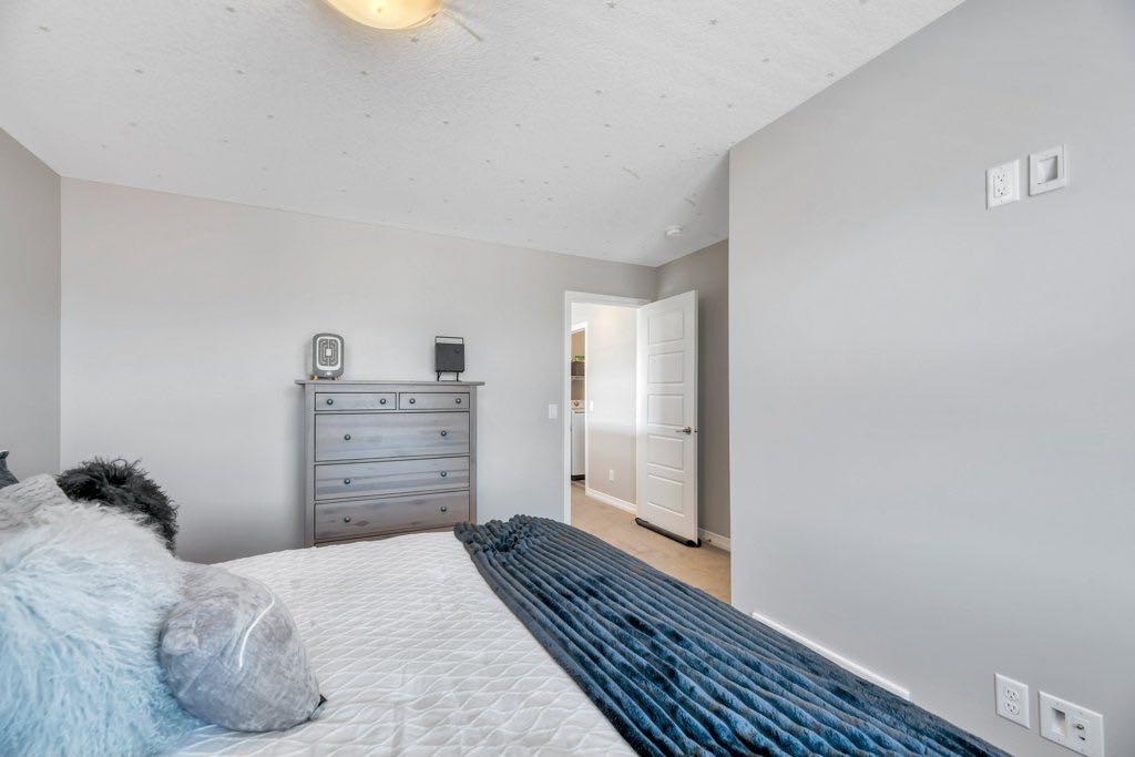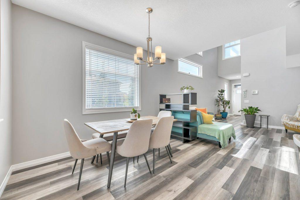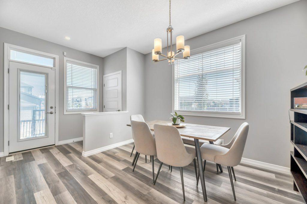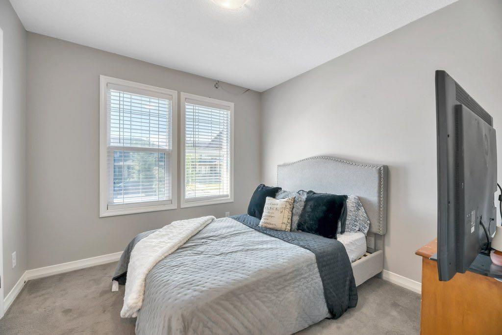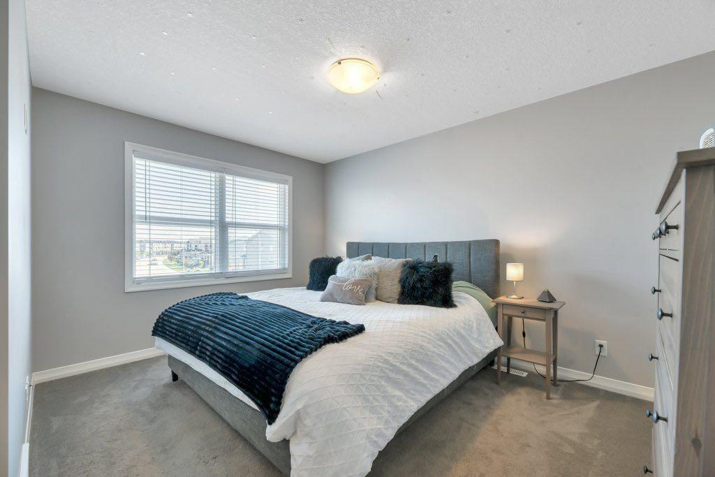 Amazing layout! Fall in love with your new home in the vibrant, family oriented community of Evanston. This unique side by side home offers modern stylish finishes and a super functional layout on a prime corner lot. Striking red siding, contemporary architecture, well maintained landscaping and the coolest weather resistant fence made from bamboo make this property stand out from the crowd. You’ll feel at home right away as you step into the bright and sunny living space with its soaring vaulted ceilings and spacious open concept layout with tons of windows. You’ll love the well planned kitchen with popular white cabinetry, gleaming stainless steel appliances, quartz counters and a centre island with seating for friends and family to gather. A cute little coffee or appliance station leads to your oversized pantry / storage room. The kitchen is also open to the dining area and a back door leads to your deck for easy access for grilling and outdoor dining. 2 more closets on this level provide ample storage for outer wear and other items. The second level of this home has one bedroom plus a full bath creating a perfect private space for a child or teen’s room, guest room or maybe a home office. The spacious owner’s retreat is on the top level. The 5 pc ensuite includes his and hers sinks, a good sized soaker tub and a separate shower plus there is a generous walk in closet. You’ll love the convenience of upstairs laundry and the vaulted open hallway takes advantage of the many windows on the main level creating a bright and open feel. You can expand your living space as needed in the clean, dry and unspoiled basement. Big windows give you the opportunity to add additional bedrooms if desired. The backyard has a nice deck and plenty of grassy area for kids and pets to play plus there is room to add a garage with back alley access. You are going to love living in Evanston. This modern suburban community offers an abundance of green spaces, great local schools and access to all urban amenities and major roadways. Don’t miss your chance to call this one home.