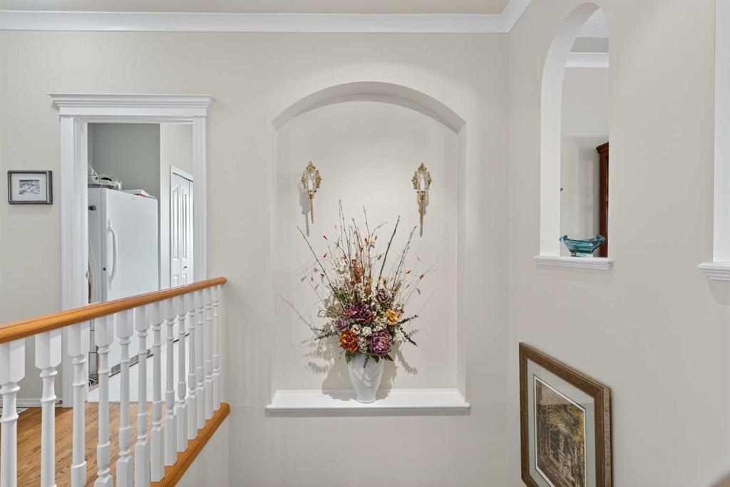 Surrounded by breathtaking views of the 16th hole of the Hamptons golf course is this lovingly maintained bungalow here in exclusive Hamptons Heights just minutes to the clubhouse & neighbourhood shopping. Original owners of this mint condition estate home, which enjoys beautiful hardwood floors & central air, 3 bedrooms + den, 2 fireplaces & 2 fantastic decks to take in the glorious wide views. Complemented by expansive 9ft ceilings & picture windows, you’ll love the inviting & airy feel of the main floor with its stunning living room with 11ft stepped ceilings & 3-sided fireplace, elegant open concept formal dining room & sun-drenched maple kitchen with skylights & quartz countertops, dining nook with access onto the L-shaped balcony, walk-in pantry & white/stainless steel appliances. The relaxing owners’ retreat has a big bay window with views of the golf course, great-sized walk-in closet & jetted tub ensuite with double vanities, separate shower & built-in shelving. The beautifully finished walkout level – with infloor heating, is finished with 2 large bedrooms & another full bathroom, loads of extra space for storage & fantastic games/rec room with wet bar, stone-facing fireplace & built-in cabinets. Main floor also has a dedicated home office with built-in bookcases & laundry room complete with Maytag washer & dryer, sink & built-in cabinets. For your outdoor entertaining & relaxation, you’ve got a huge partially covered balcony (almost 300sqft) with natural gas line for your BBQ plus a covered 300sqft covered patio in the backyard, which is fully fenced & landscaped with winding gardens, mature shrubs & trees. Additional features include crown moldings, finished garage, red brick façade & clay tile roof, Hunter Douglas blinds, 2 hot water tanks, central vacuum system & storage shed in the backyard to store your gardening tools. Not-to-miss opportunity to make your home in one of the Hamptons most desirable locations, only a few short minutes to all community amenities (Hamptons School, tennis courts & sports fields), shopping at the Hamptons Co-op & Edgemont Superstore, plus quick & easy access to Crowfoot Centre & LRT, University of Calgary, major retail centers & downtown.