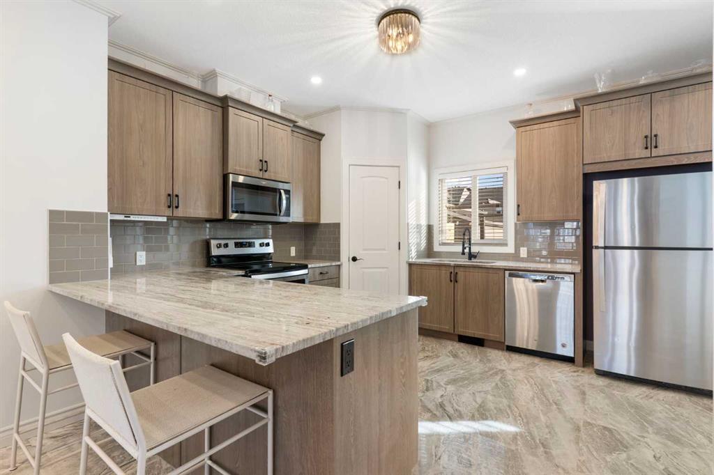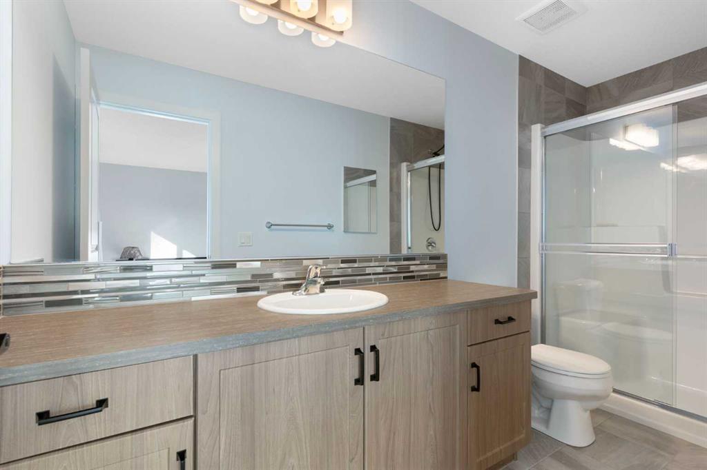 This 4 bedroom 3.5 bath home has over 2000 sq ft of developed living space that has been well cared for and recently updated with luxury porcelain tile on the main floor, new carpets upstairs with top of the line underlayment, and the entire home has been recently painted. The main level is open and bright with extra recessed lighting added and a rear kitchen with quartz countertops, a corner pantry and an under mount sink looking out to the spacious backyard. Upstairs features the primary bedroom with 3 piece ensuite and walk in closet, two additional well-sized bedrooms, a full 4-piece bathroom, and convenient upstairs laundry. Downstairs you’ll find a large recreation area, a beautiful 4-piece bathroom, and a spacious bedroom, making it perfect for extended family, visitors, or simply extra room to spread out. The home also has air conditioning to keep the whole family comfortable in the summer months.