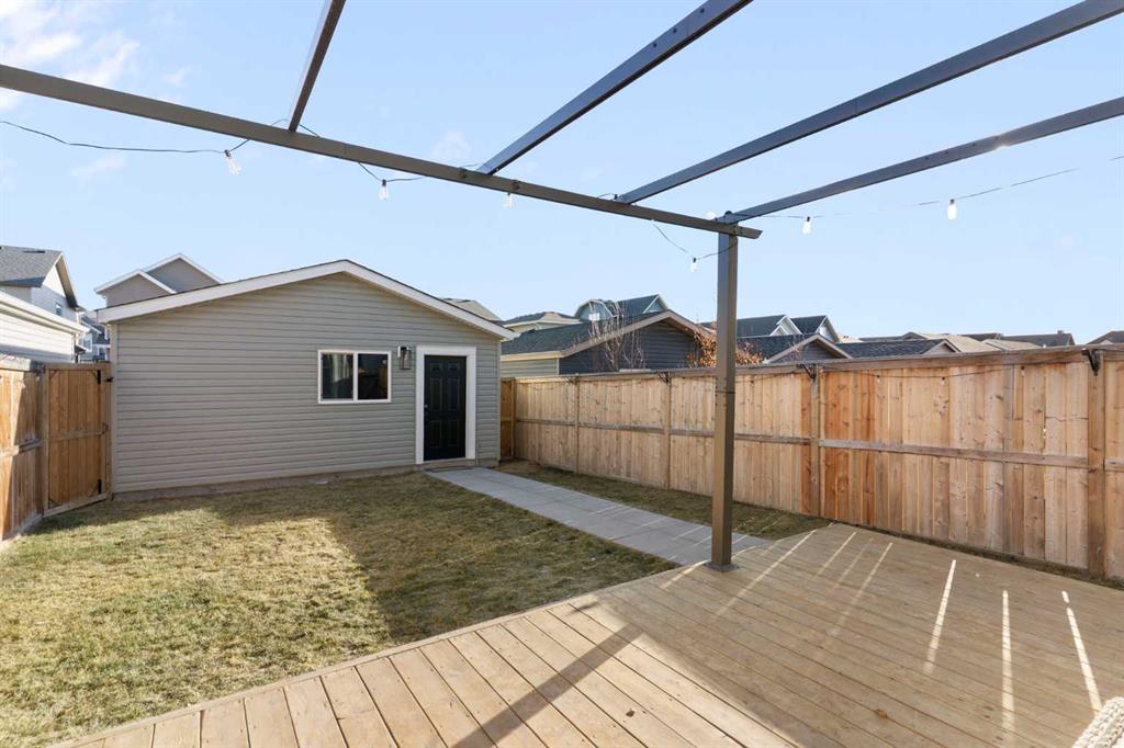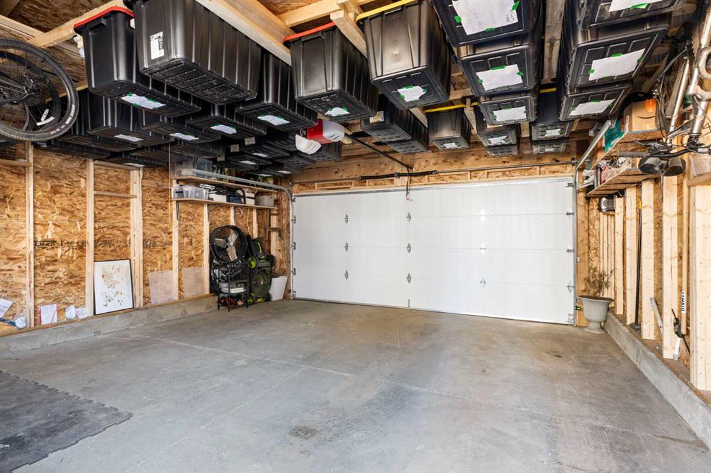 The east-facing backyard is a private retreat, thoughtfully set up for both relaxing and entertaining. Enjoy the 12’ x 22’ floating deck tucked behind a privacy wall and covered by a retractable pergola, complete with a gas line for your BBQ or a patio heater. The rest of the yard is fully fenced, landscaped with soft, low-maintenance grass, and a wide pathway leading to the oversized 20’ x 22’ detached garage. The garage has been customized with impressive storage solutions including rafters, pegboard, shelving, overhead I-beams with extensive bin storage, and tire racks.