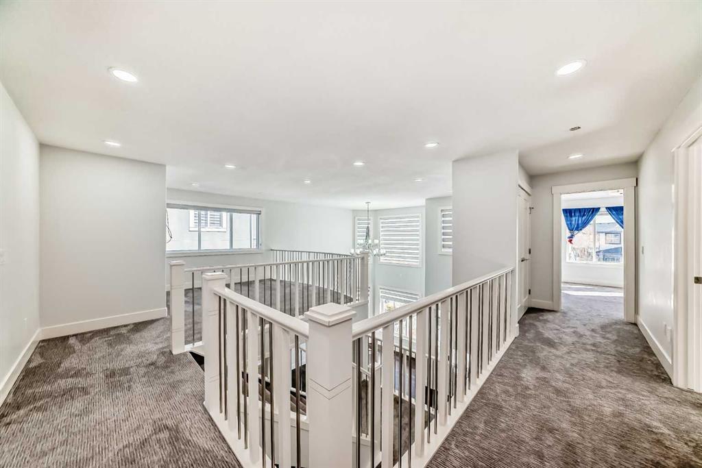 From the moment you step inside, you’ll be impressed by the open-concept floor plan, 9-foot ceilings, rich hardwood flooring, and a dramatic open-to-below feature with elegant wood and iron railings that create a bright and spacious feel throughout the home.
