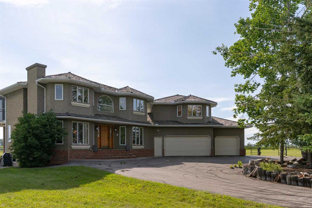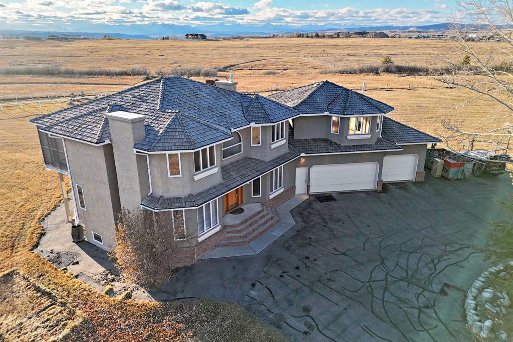 Discover an extraordinary opportunity at 108 Pleasant View Heights—a legacy property where stunning natural beauty meets remarkable investment potential. This isn’t just a home; it’s a private 8.5-acre sanctuary, fenced and cross fenced with four pastures on a quiet cul-de-sac. With 180-degree mountain views and just a 6-minute drive on pavement to Cochrane, this property offers the perfect blend of serene acreage living and strategic development possibilities.The added value of this land lies in its future. It presents a rare opportunity for subdivision or other creative ventures. The upcoming extension of municipal water and sewer to the property line opens up even more possibilities (subject to Rocky View County bylaws and approvals). Whether you envision a multi-generational estate or unlocking investment potential with additional parcels, the opportunities here are vast and exciting.The family home, with nearly 3,000 square feet above grade, is a masterpiece of design. Inside, a grand spiral staircase, four generous bedrooms, and an abundance of natural light create a warm and inviting haven. The main floor features a spacious living room, a large kitchen, formal dining, a main-floor office, and laundry. You’ll love the massive covered sunroom on the main level and a secondary covered sunroom upstairs.Above the attached triple garage, a huge bonus room with floor-to-ceiling windows and a cozy fireplace provides the perfect spot to unwind while soaking in those spectacular views. Enjoy a triple garage with in-floor heat and a large paved driveway, providing ample space for vehicles and hobbies. Outside, mature trees create a private, serene oasis. This property offers the best of both worlds: the peaceful tranquility of acreage living with easy access to all that Cochrane has to offer. Commute easily to excellent schools, diverse shopping, and outstanding recreational facilities like the SLS Centre. From downtown boutiques to endless outdoor adventures, Cochrane provides an active and fulfilling lifestyle. This is more than just a house; it’s a legacy property offering a unique blend of natural beauty, spacious living, and incredible investment potential.