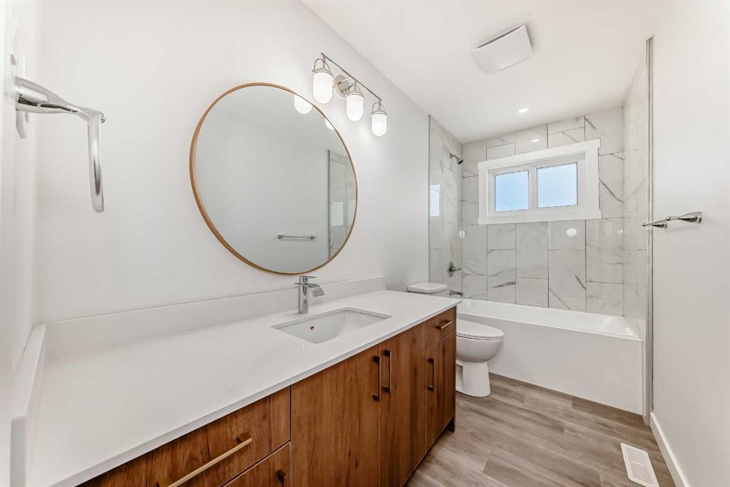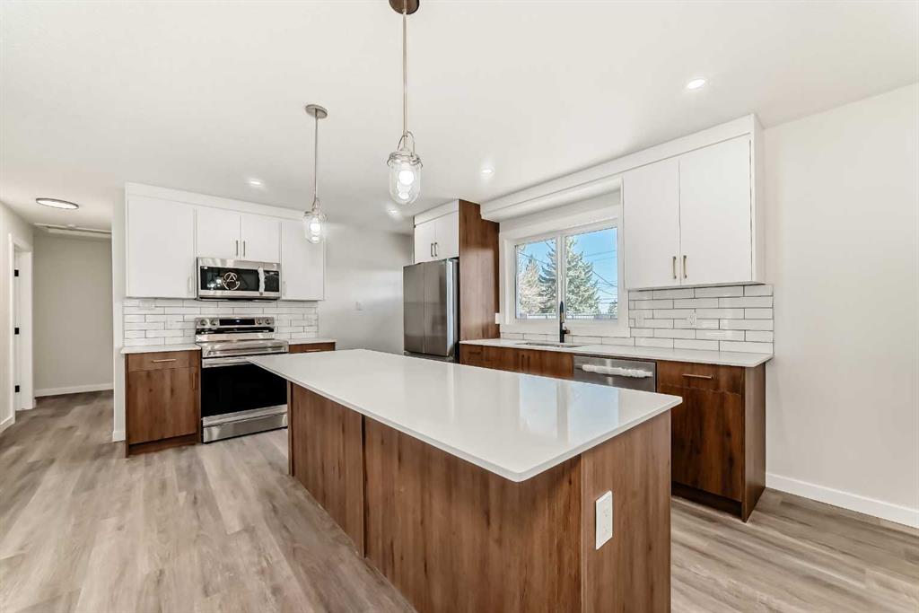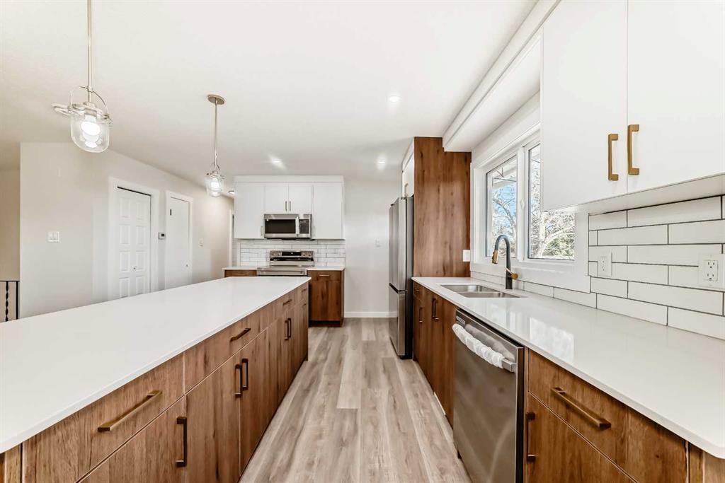 Welcome to this beautifully updated bi-level home in the highly sought-after community of Southwood, ideally located directly across from a green space and playground—perfect for families and those who value open views and outdoor living. Offering about 2,000 sq ft of developed living space, this home features a bright and functional open-concept layout with 3 bedrooms upstairs and 1 additional bedroom downstairs, making it ideal for families, guests, or multi-generational living. The main level is filled with natural light thanks to east and west-facing windows, creating a warm and inviting atmosphere throughout the day. The home has been tastefully renovated with modern finishes, including luxury flooring, updated lighting, elegant backsplash, and a fully upgraded kitchen complete with brand new appliances.