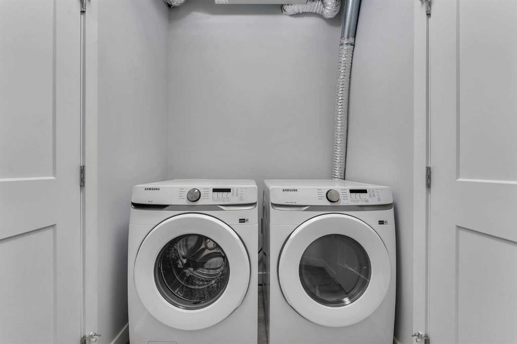 Your bedroom is a cozy retreat with a large window offering abundant daylight, a walk-in closet, and convenient access to the full bathroom with a Jack & Jill door. Additional highlights include in-suite laundry, central air conditioning for year-round comfort, and a titled parking stall for your convenience.