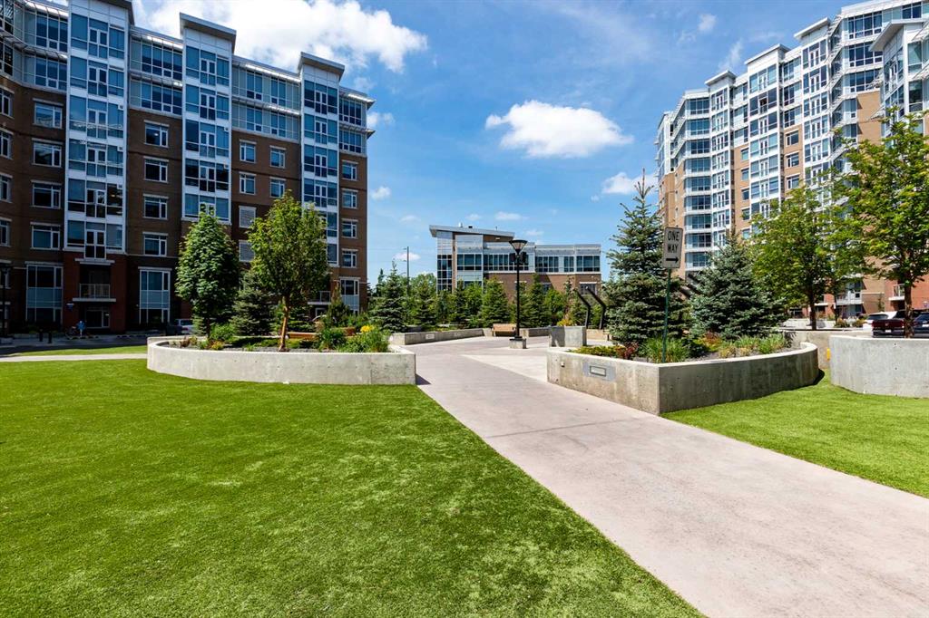 Welcome to stylish condo living in the highly sought-after community of Varsity Estates. This beautifully upgraded 2-bedroom, 2-bathroom main floor unit offers the perfect combination of style, comfort, and unbeatable convenience. Originally a former show suite, this home is loaded with upgrades including granite countertops, upgraded maple cabinetry, and beautiful flooring that create a modern feel throughout. The kitchen flows seamlessly into the bright living area, creating an inviting space for both everyday living and entertaining. Gorgeous laminate flooring enhances the main living area while the well-planned layout offers excellent separation from bedrooms for added privacy. The primary bedroom is a true retreat, featuring large south-facing windows that fill the room with natural light, a walk-in closet and a 5-piece bathroom, featuring dual sinks, a soaker tub and a separate shower. A second bedroom and full bathroom provide flexibility for guests, family or a home office. Step outside to enjoy the large patio space, offering covered and uncovered areas, perfect for morning coffee and summer evenings. Additional highlights include in-suite laundry, pantry, titled underground parking and a separate storage locker. Residents of the Groves of Varsity enjoy outstanding year-round amenities including a fully equipped fitness centre, steam rooms, meeting and party spaces and a spectacular roof-top terrace with mountain views. Located steps from coffee shops, parks, medical offices and shopping, this location truly offers everything at your doorstep.