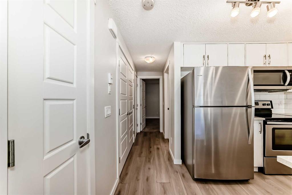 VALUE VALUE VALUE! $111.41 condo fee! This modern Riverstone home in Cranston offers an open-concept layout with upscale finishes, including stainless steel appliances, quartz counters, and a subway tile backsplash. Steps from the Bow River, trails, and green spaces, it features a large primary bedroom with dual closets, a 4-piece bath, in-suite laundry, extra storage, a fenced patio, and a dedicated parking stall. Pet-friendly (board approval) and conveniently close to amenities, this property combines natural surroundings with urban comfort at a low monthly condo fee.
