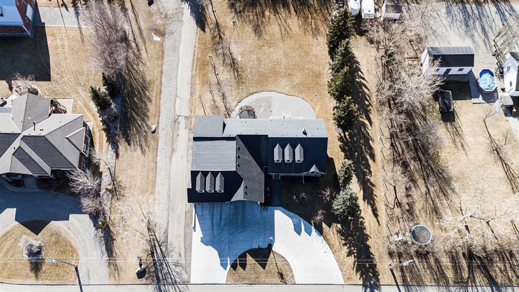 Located on one of the most sought-after cul-de-sacs in town, this one-of-a-kind family home is truly unforgettable. With convenient walking access to schools, baseball diamonds, and paved pathways, the location is just as impressive as the home itself. From the moment you arrive, the expansive circular driveway and incredible heated 4-car garage set the tone for what’s to come. Step inside to a bright, open-concept main living area featuring vaulted ceilings and beautiful dormer windows that flood the space with natural light. The thoughtfully designed kitchen is the heart of the home, complete with a large eat-up island, sink overlooking the backyard, warm wood cabinetry, and stainless steel appliances perfect for staying connected while entertaining or spending time with family. The spacious dining area easily accommodates gatherings of any size and offers direct access to the partially covered back deck. Just off the front entry, a versatile flex room provides the perfect opportunity for a home office, or future walk-in pantry. The main floor continues with two generously sized bedrooms, each with large closets, and a 3-piece bathroom tucked behind a pocket door for added privacy. The primary suite is a true retreat, featuring private access to the back deck, DOUBLE walk-in closets, and a luxurious ensuite with a corner soaker tub, separate shower, double sinks, and a private toilet room. Additional main floor highlights include a convenient 2-piece guest bathroom and a spacious laundry room with a full wall of built-in lockers, ideal for busy family life. The fully developed basement offers large windows, brand new carpet, a massive family room, wet bar with full fridge, games area, two additional bedrooms with walk-in closets, a 4-piece bathroom, and ample storage including a secure lockable room. And then… there’s the garage.