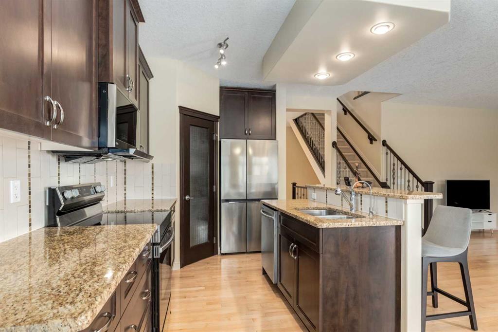 This stunning detached two-storey walkout home in the desirable community of Westridge, Okotoks is one you won’t want to miss. From the moment you step through the front door, you’re welcomed by a spacious foyer complete with a convenient built-in bench—perfect for keeping everyday life organized. Just off the entryway, you’ll find a private powder room and a thoughtfully located laundry area. The main floor features a bright, open-concept layout designed for both comfort and entertaining. The living room is anchored by a cozy gas fireplace, flowing seamlessly into the dining area and modern kitchen. The kitchen is equipped with quartz countertops, a breakfast bar, and a pantry, offering both style and functionality. Step outside onto the expansive deck and enjoy peaceful views of the greenspace, with a playground just steps away—ideal for families with young children. Upstairs, a generous bonus room at the front of the home is filled with natural morning light from its eastern exposure. The upper level also includes two well-sized bedrooms, along with a spacious primary retreat featuring a walk-in closet and a luxurious 5-piece ensuite bathroom. The fully developed walkout basement is a standout feature, bathed in warm west-facing sunlight—perfect for enjoying long summer evenings. This level includes a large recreation room, a full bathroom, a guest bedroom, and an open office area, ideal for working from home. Recent updates in the house were refrigerator, stove, microwave hoodfan, and hot water tank all replaced in 2025. Westridge is a family-friendly community offering schools from kindergarten through high school, as well as an abundance of walking and biking paths. Conveniently located near downtown Okotoks and major shopping destinations like Costco and Home Depot, everything you need is within easy reach. With just a short 15-minute commute, this charming town offers a quiet, small-town feel that’s perfect for raising a family. Don’t miss your opportunity to call this incredible property home—book your showing today!
