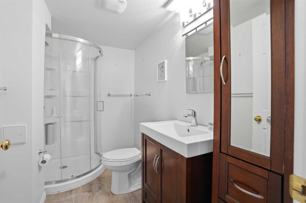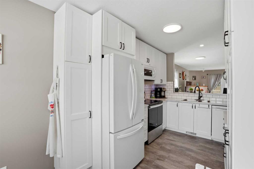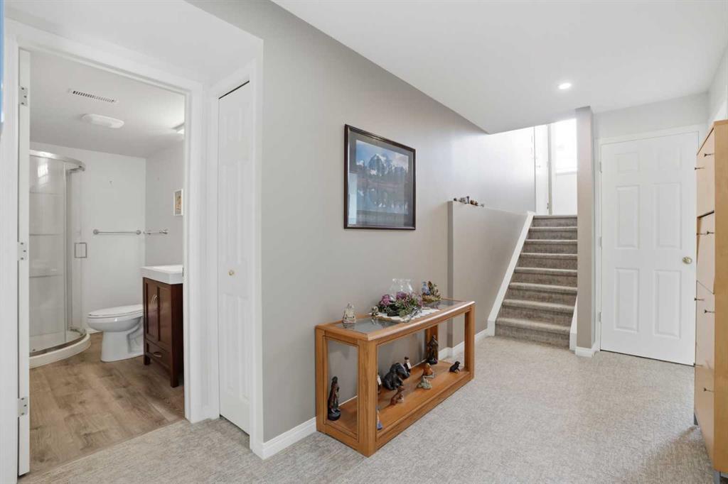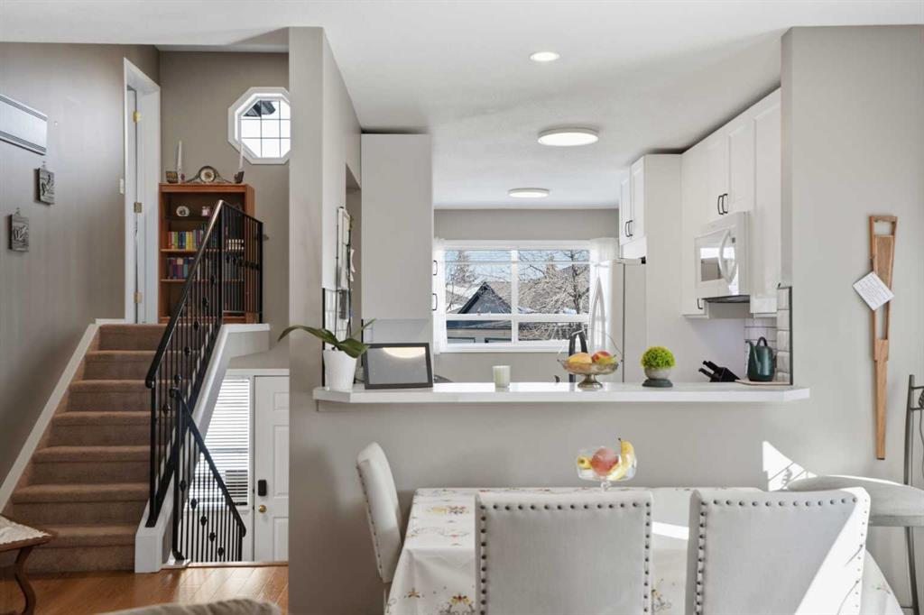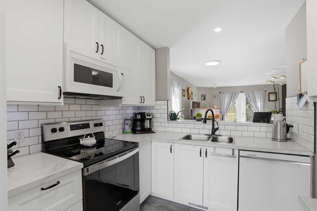 WOW! Take a look at this incredible end-unit duplex in the West Point Villas II complex, in the sought-after neighbourhood of Fairways, NW Airdrie! Boasting 1,881 square feet of fully developed living space, this home features 3 bedrooms + den, and 3 full bathrooms! Noteworthy upgrades/updates include a tastefully renovated kitchen (with bright white cabinetry, laminate countertops, and newer appliances), a newly custom-built glass-enclosed walk-in shower in the primary ensuite, central air conditioning, central vacuum system, cozy natural gas fireplace in the living room, and upgraded flooring throughout (hardwood, linoleum, and plush carpet). The furnace has been recently serviced and new smoke/CO detectors have been installed for added peace of mind. Additional highlights include a large, private, fully-fenced, south-facing backyard with a spacious composite deck and beautiful perennial garden, an insulated single attached garage with storage cabinetry, and a front driveway for extra parking. Don’t miss this rare opportunity—call today!