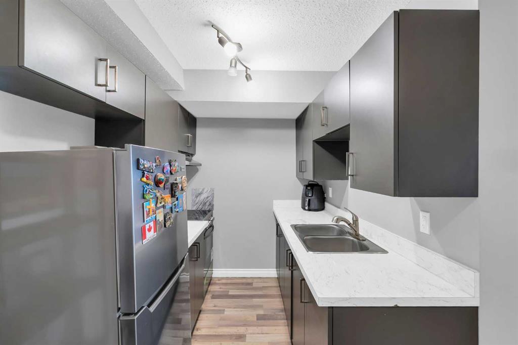 Incredible opportunity for first-time buyers, investors, or those looking to downsize. This charming 1-bedroom condo offers over 632 sq ft of living space with a private entrance and side porch. The open-concept layout flows seamlessly from the living and dining areas to a large, private, covered balcony — perfect for your morning coffee. The bright and spacious primary bedroom features large windows overlooking the balcony and generous closet space. The updated kitchen includes sleek cabinetry, newer stainless steel appliances, and a stacked washer and dryer conveniently located in the utility room. Additional upgrades includes a newer furnace and hot water tank. Enjoy the convenience of 1 Assigned parking stall*** (#11) included in condo fees. Located just minutes from downtown, schools, parks, shopping, and public transit, with quick access to Trans Canada, McKnight and Deerfoot Trail. Move-in ready with an excellent value and priced to sell — book your showing today with your favorite Realtor!