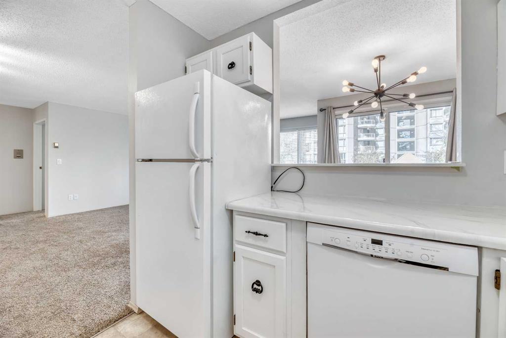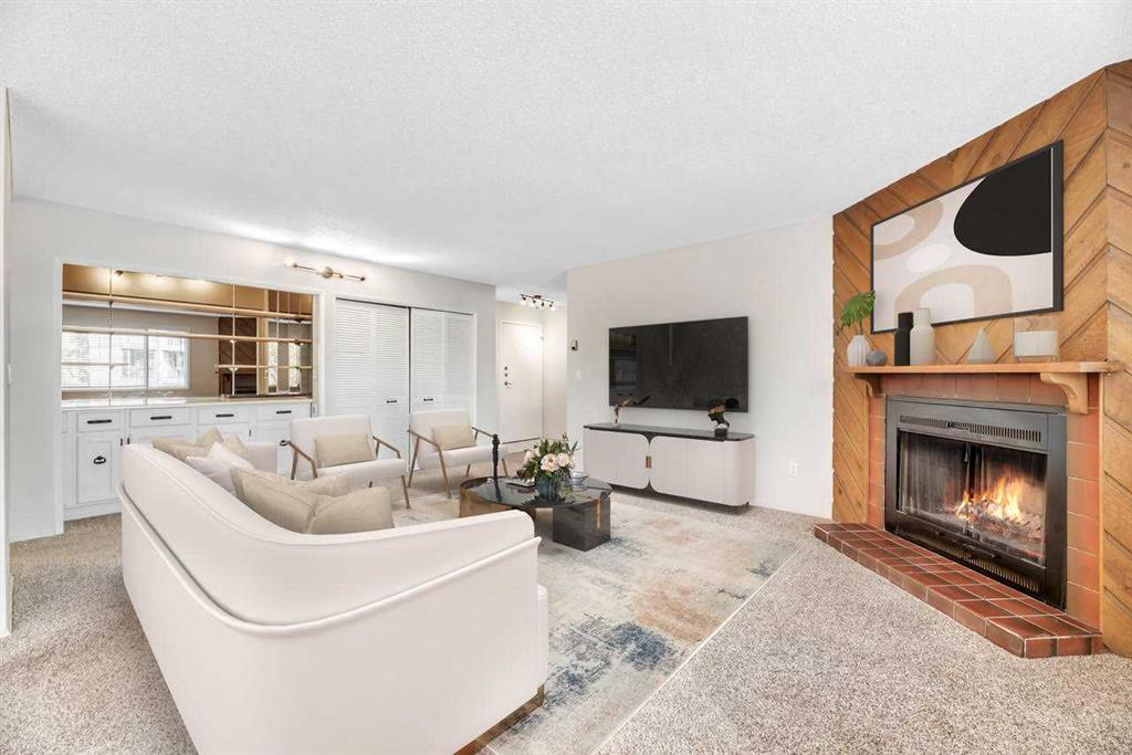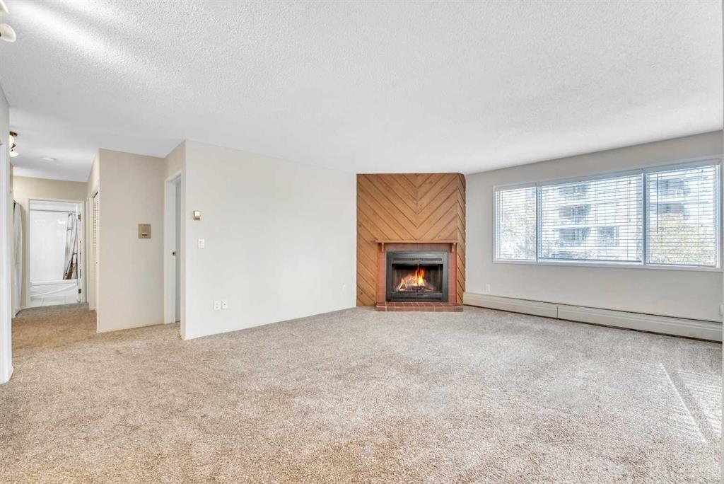 BIG PRICE ADJUSTMENT!! BACK ON THE MARKET DUE TO FINANCING. Recently updated, move-in ready, 2 bedroom end unit condo in a vibrant community just steps away from the Bow river pathway system, Eau Claire Market and Prince’s Island Park plus a short walk to downtown offices. Take the elevator directly to your door and step into a spacious, bright open plan. The covered deck is private and has good views of the tree lined street(vs the back alley). Put your feet up and relax in front of the wood burning fireplace in the living room, with a great bar for entertaining and extra storage. The dining room has lots of room for hosting with a trendy light fixture and patio sliders to the balcony. The kitchen has been updated with lots of counter space and numerous white cabinets. The primary bedroom is large with a his/her closets and the second bedroom could also double as a home office. In-suite laundry, heated underground parking and additional storage locker makes this condo a WINNER in every respect. The building is well managed and is nice and quiet. Simply a wonderful, beautifully updated condo in an unbelievable location, allowing you to stroll along the river, sip coffees at the amazing nearby cafes. GREAT VALUE AND IMMEDIATE POSSESSION!! 2 small pets allowed with board approval.