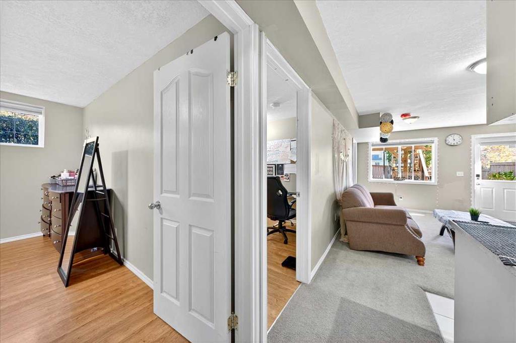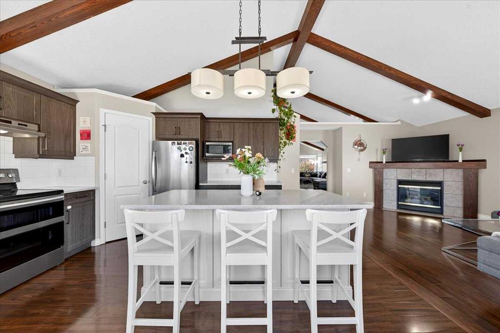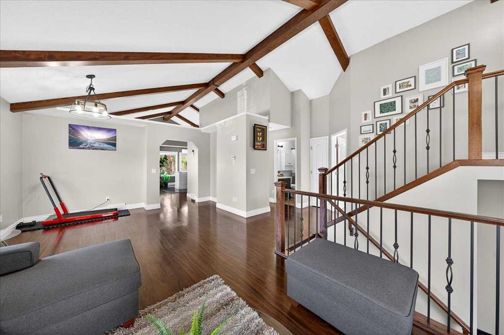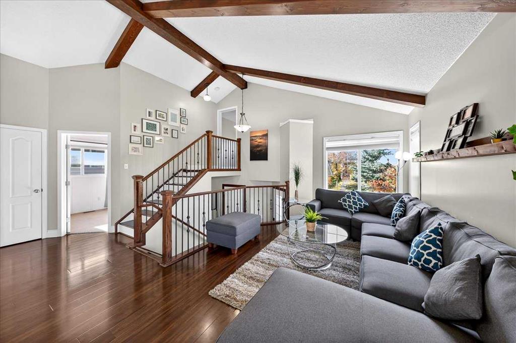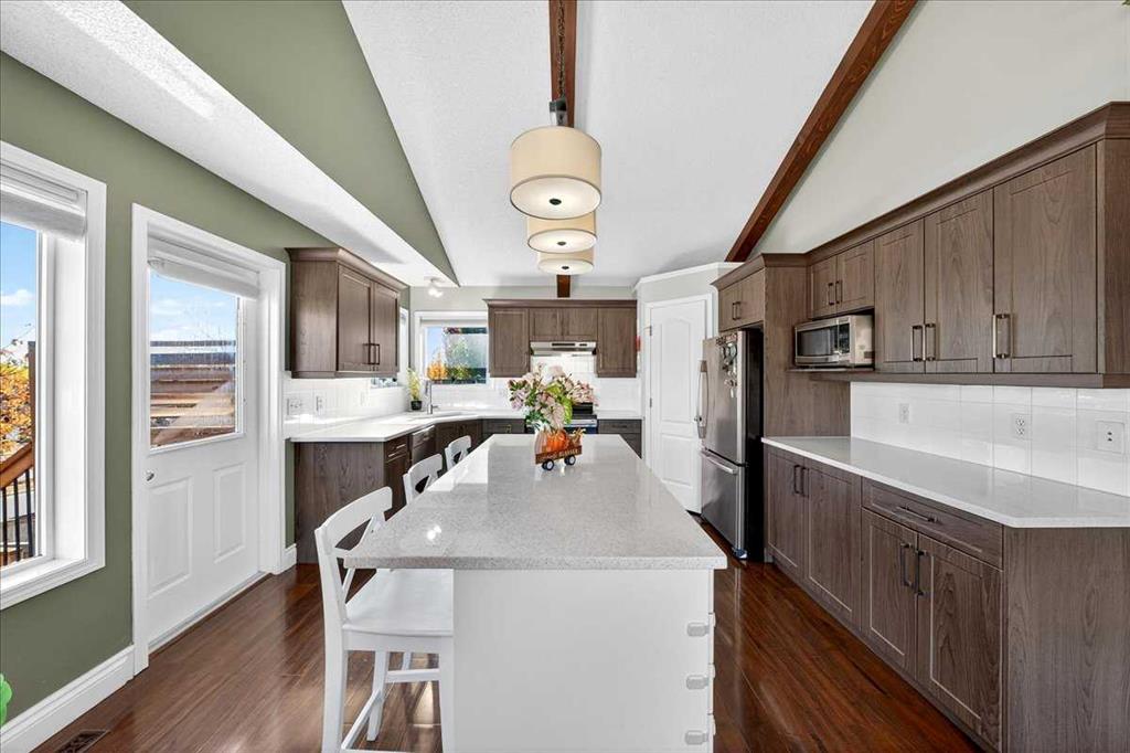Welcome to this beautifully upgraded and spacious bi-level home, perfectly situated on a sunny corner lot in a family-friendly neighbourhood of Citadel With over 2,500 sq.ft. of total developed space, this home offers an exceptional layout, including a legal walk-out basement suite — ideal for extended family or income potential. Step inside to soaring vaulted ceilings with custom Fir box beams, creating warmth and architectural charm. The main floor features a bright and open living room, a formal dining room, and a cozy family room with a corner gas fireplace—a perfect spot for relaxing or entertaining. Plenty of natural lights flowing through big windows. The upgraded kitchen is both functional and stylish, with quartz countertops, a large island with seating for four, soft-close cabinets and drawers, stainless steel appliances. Step outside to your beautifully landscaped backyard, complete with a pressure-treated deck with privacy screens, mature bushes, perennials, and fruit trees including apples.