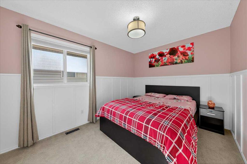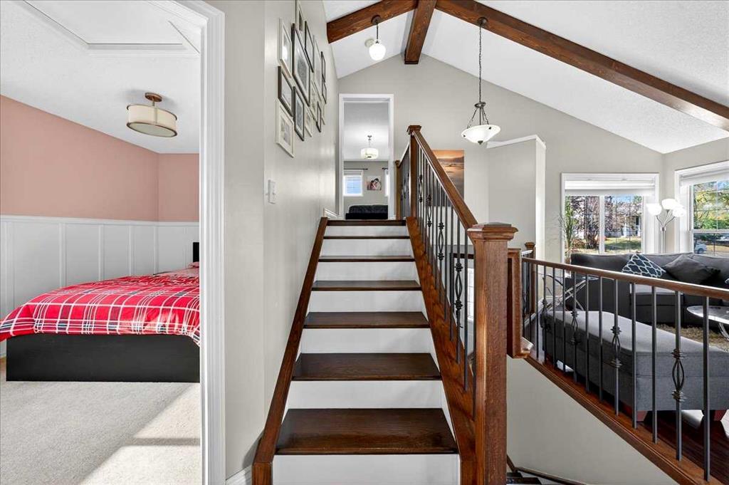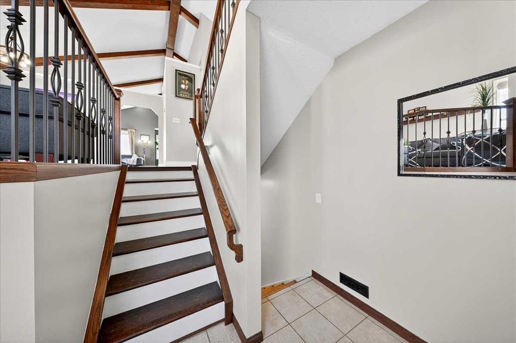 The main level includes three bedrooms, while the primary suite is tucked away on its own upper level, offering extra privacy. The spacious retreat features a walk-in closet and a 4-piece en-suite bathroom. The fully finished, legal walk-out basement SUITE adds tremendous flexibility, complete with two additional bedrooms, a full 3-piece bath, a den/storage room, and a large rec room. A dedicated laundry area with upper cabinetry is located in the mechanical room. Additional upgrades and features include : Central Air Conditioning, Newer High-Efficiency Furnace (2018), No-String Cordless Blinds, Insulated Garage with Updated Thermal Door & Opener, Corner Lot with Extra Natural Light & Space. Ideally located within walking distance to schools, parks, and transit, with quick access to Stoney Trail, Crowchild Trail, and nearby shopping centers. Recently LEGALIZED basement SUITE adds charm and functionality of this well-loved home—making it a perfect choice for your next chapter. Check out the virtual link for more information.