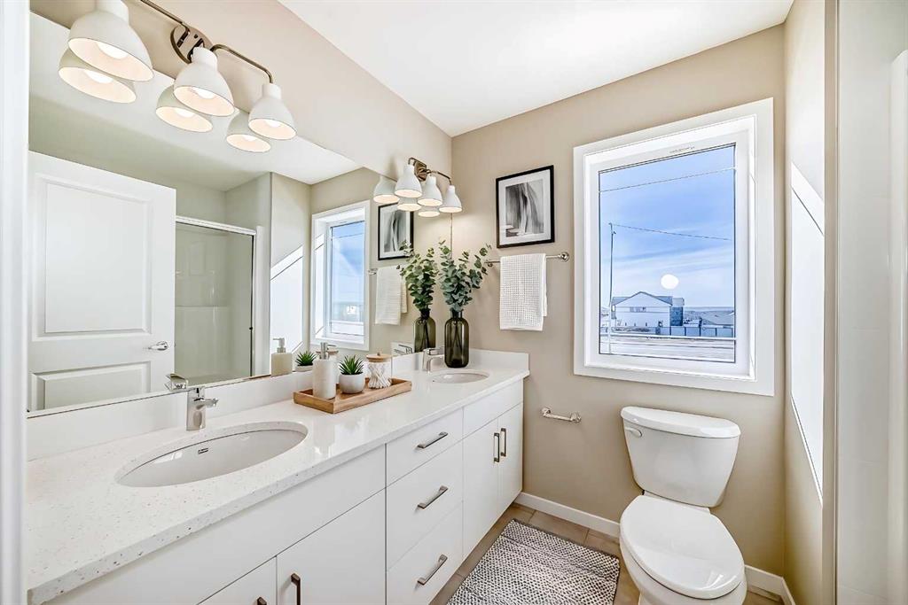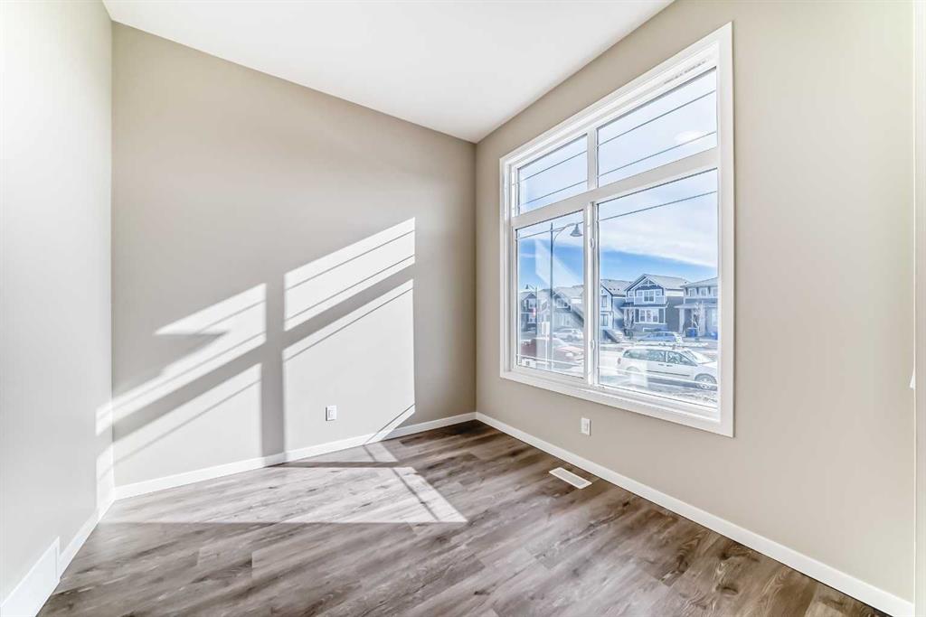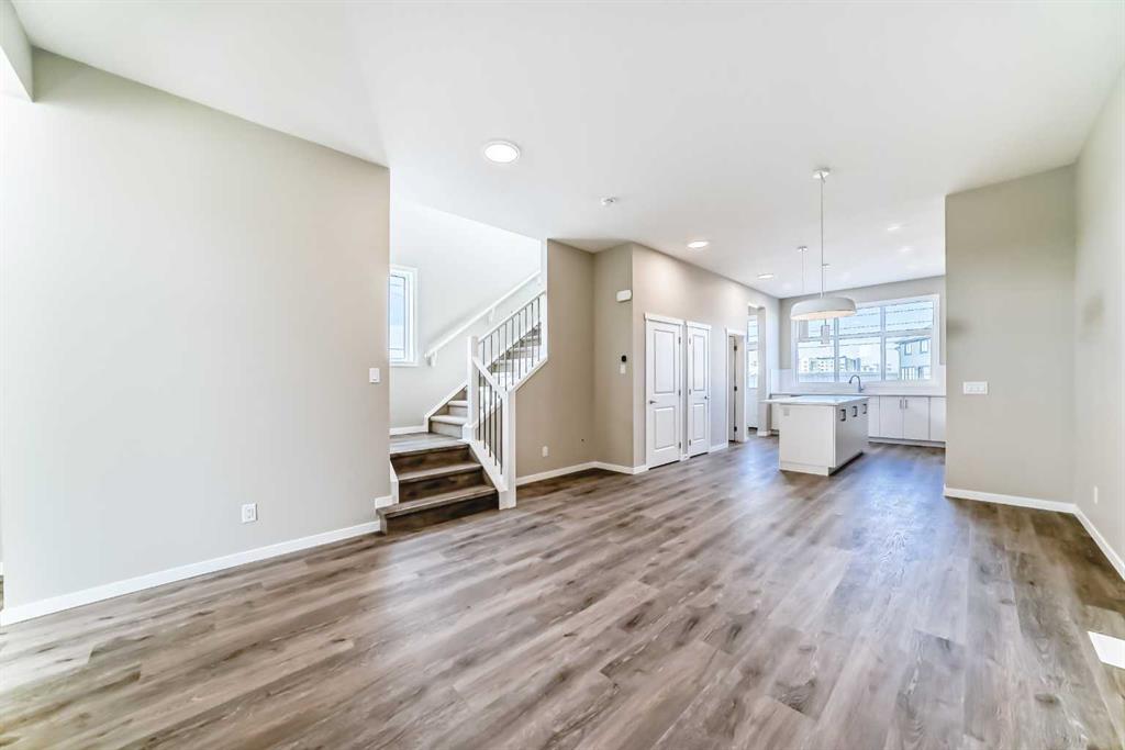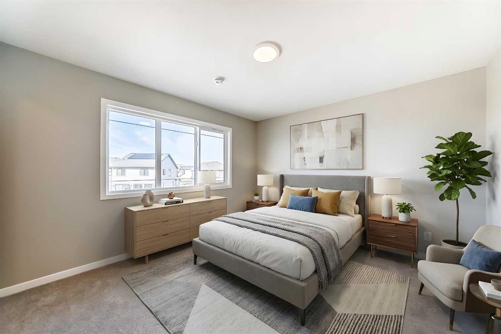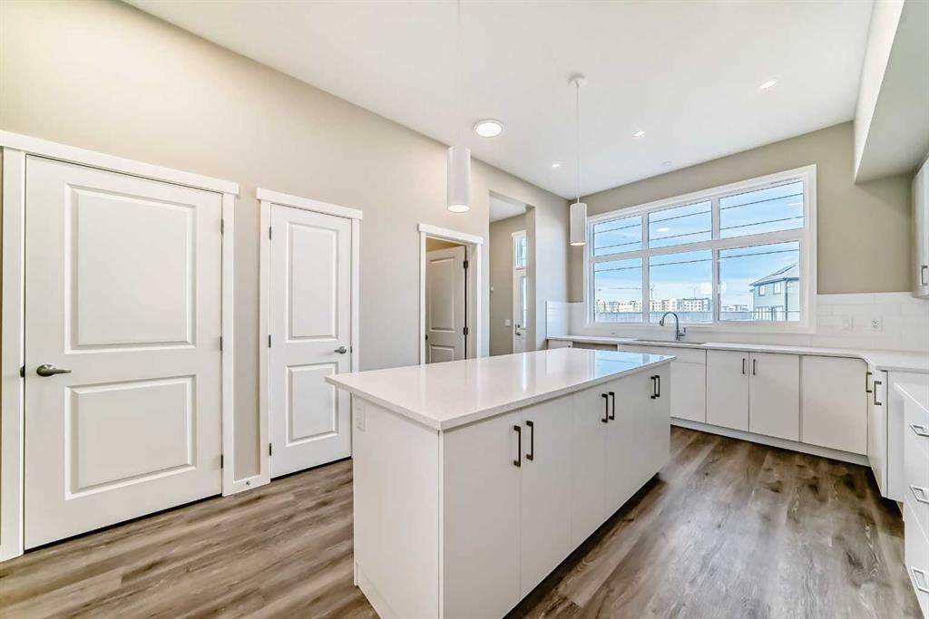 Welcome to this brand-new “Lyall” floor plan in the award-winning lake community of Mahogany, a thoughtfully designed home that blends modern style, everyday functionality, and future flexibility. From the moment you step inside, you’re greeted by soaring 10’ ceilings and warm luxury vinyl plank flooring that flows throughout the main level, creating an open and inviting first impression. At the front of the home, a versatile flex room offers the perfect place for a home office, reading lounge, kids’ playroom, or creative space. As you move toward the rear of the home, the layout opens beautifully into a bright and spacious living area designed for both daily living and entertaining. The living room feels warm and welcoming, the oversized dining area is ideal for family dinners or hosting friends, and the kitchen truly anchors the space with its stylish blend of modern cabinetry and warm wood tones. Complete with quartz countertops, a classic white subway tile backsplash, stainless steel appliances, and a large central island, this kitchen delivers both style and function in equal measure. Upstairs, a smartly positioned central loft creates a valuable second living space while also offering privacy between the primary retreat and the secondary bedrooms. The primary suite is a peaceful escape, featuring a spacious walk-in closet and a beautifully appointed 4-piece ensuite with dual sinks. Two additional bedrooms provide plenty of room for children, guests, or hobbies, while the full 4-piece bathroom and upper-floor laundry add everyday convenience. A secondary entrance adds even more versatility, offering future potential for a guest area, extended family setup, or additional living space (subject to city/municipal approval and permitting). This home also comes complete with full front and backyard landscaping, including sod, mulch on the side yards, and trees/shrubs in the front as per community guidelines. What truly sets this property apart is the oversized lot—a rare opportunity that offers endless possibilities for outdoor living, play space, gardening, or creating the backyard you’ve always envisioned. With the added side yard and a non-zero-lot-line placement, this home provides more breathing room and usability than many others, making it an exceptional option for buyers who value both space and future potential. Located in the vibrant four-season community of Mahogany, residents enjoy access to Calgary’s largest freshwater lake, two private beaches, a Beach Club, tennis courts, skating rinks, fishing, playgrounds, and over 22 km of scenic pathways and wetlands. The popular Village Market offers restaurants, cafés, shopping, and everyday conveniences, while nearby South Health Campus and the Seton Urban District add even more accessibility and lifestyle appeal. From summer paddleboarding to winter skating and peaceful walks through the wetlands, Mahogany offers a lifestyle that is truly second to none.