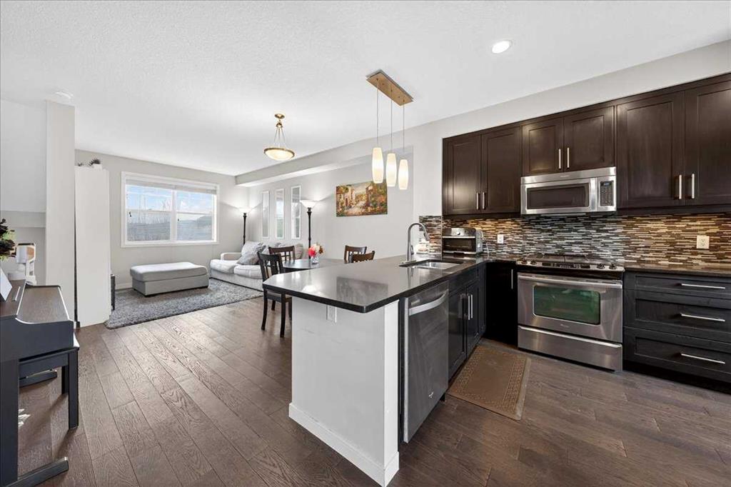 Move-in ready 3-bedroom townhome in NW Calgary with a double garage and double driveway. Built by Jayman, this bright split-level home features north- and south-facing windows, granite countertops, luxury vinyl flooring, central A/C, and top-floor laundry for everyday convenience. The chef-inspired kitchen includes a gas stove, ample prep space, custom storage, and a BBQ gas line—perfect for easy entertaining. The spacious primary bedroom offers a walk-in closet and private ensuite, while two additional bedrooms are ideal for kids, guests, or a home office. Located along the boulevard for quick access to amenities while remaining quiet and family-friendly without heavy road noise. Close to parks, schools, and shopping, this low-maintenance NW Calgary townhome is perfect for first-time buyers, families, or investors looking for value in a great community.