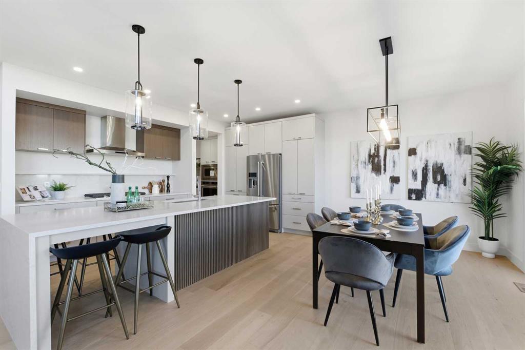 (OPEN HOUSE NOV 15 & 16 12-3PM) Step into 11 Rowmont Gardens NW, a stunning 2025 estate home built on a RARE ESTATE CORNER LOT nestled in the prestigious Rockland Park community, built by award-winning Morrison Homes and nominated for 2025 BILT AWARDS. Blending sophistication with modern luxury, this residence showcases soaring open-to-below ceilings, expansive windows, and meticulously curated designer finishes that create a warm and inviting atmosphere—perfect for both family living and elegant entertaining.