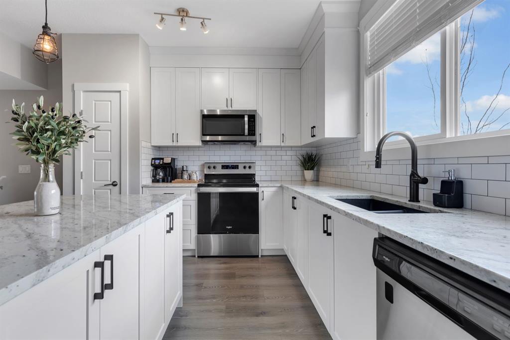 Discover elevated living in this beautifully designed townhome located in the heart of Sage Hill NW Calgary. Situated just steps away from a family-friendly playground, this property offers a rare blend of luxury, functionality, and community charm. Featuring a double master bedroom plan with dual ensuites this 2 Bedroom, 2.5 Baths design plan offers over 1,200+ square feet of luxury low maintenance living. This home features builder upgrades throughout featuring sleek granite countertops, custom shaker style designer cabinetry, premium vinyl plank flooring, high ceilings, stainless steel appliance package, full tile to ceiling around all baths/showers, and glass panelled balcony with gas-line for BBQ. This home blends together he perfect mix of modern style with at home comfort. This homes open floor plan offers natural light through large windows on every level, creating bright and welcoming spaces that feel like home from the moment you walk in.Enjoy the convenience of an attached double car (tandem) garage + full length drive way fro 3 car total parking as well as ease of access along Sage Bluff Gate for additional guest parking. Whether you’re entertaining or relaxing, the open-concept layout and thoughtfully designed living areas make this home a standout choice. Offering exceptional value in one of Calgarys premier NW communities and providing quick and easy access to nearby shopping, public transit routes, park & playground spaces, and walking and bike trails this is an opportunity not to be missed!