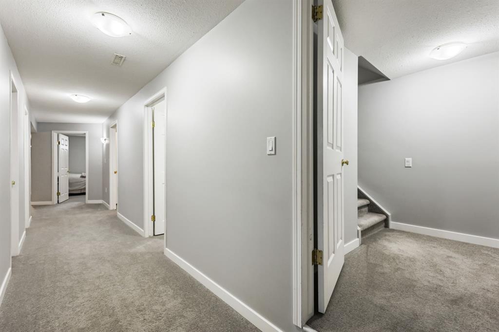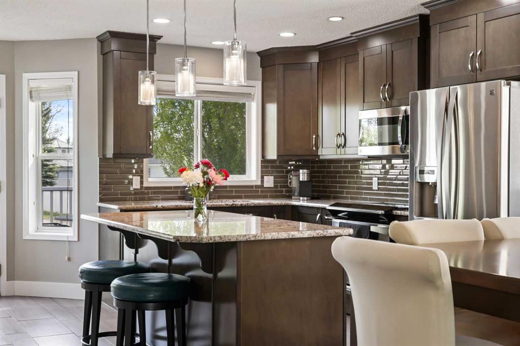 Welcome to Strathmore Lakes. This well maintained bungalow is located on a quiet street and offers over 2,500 sqft of developed living space. The home features 5 bedrooms and 3 bathrooms, providing ample space for families or those looking to downsize without compromising on room. The main floor offers an open concept layout with an updated kitchen, modern finishes, and access to a composite deck. The living and dining areas are functional and well sized. The primary bedroom includes a walk in closet and a 3 piece ensuite. Two additional bedrooms and a renovated 4 piece bathroom complete the main level. The fully developed basement includes a large family room, two additional bedrooms, a 4 piece bathroom, and substantial storage space. The south facing backyard is fully landscaped with composite decking, a shed with power, and back lane access. Additional features include central air conditioning and a double garage with built in storage. Located near parks and within walking distance to two elementary schools, this property offers a practical layout in an established community. Schedule your showing today!