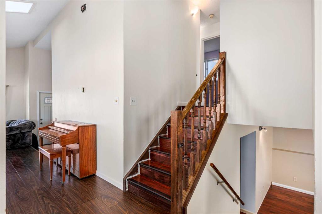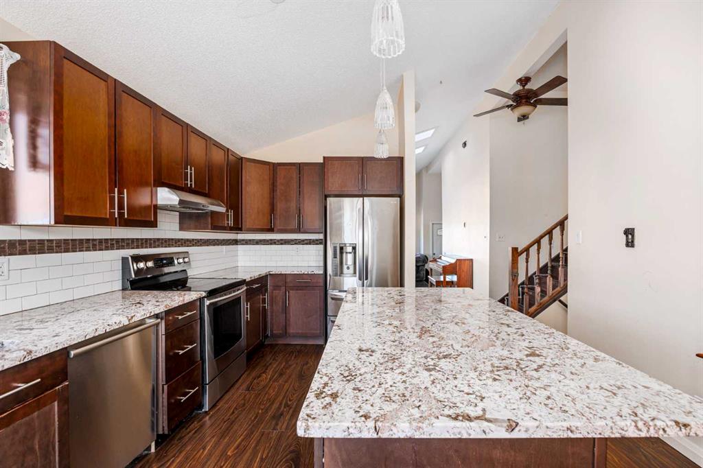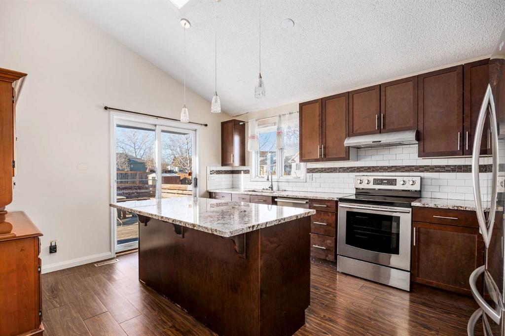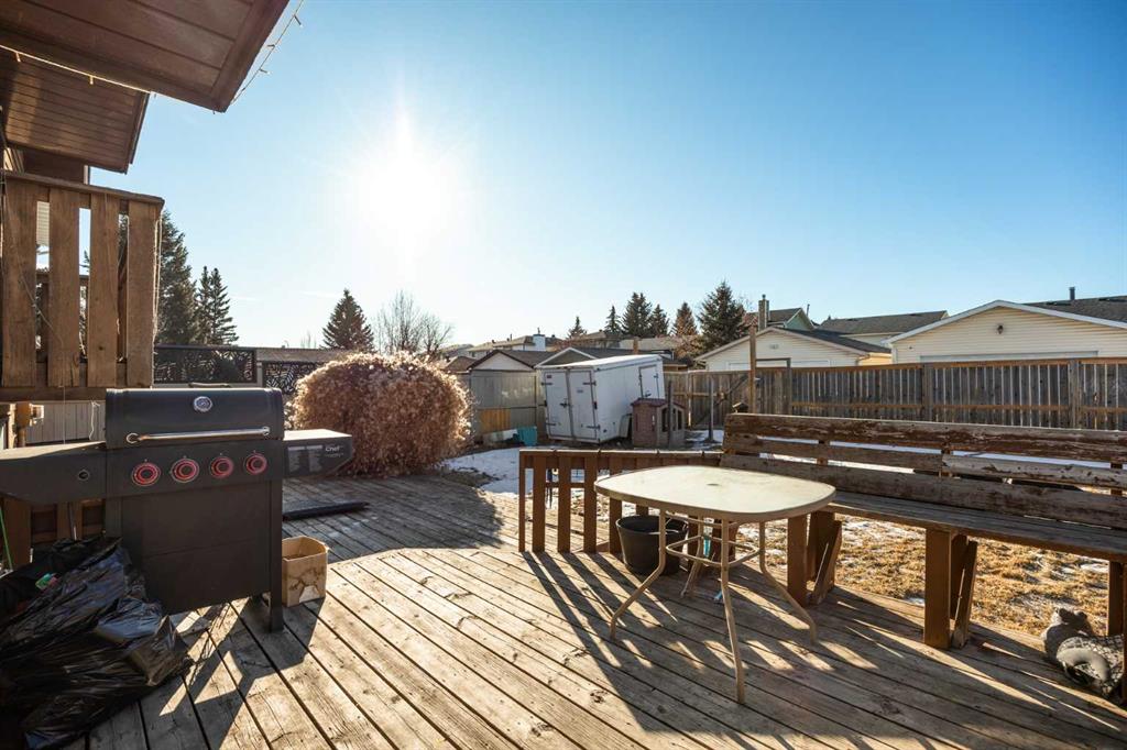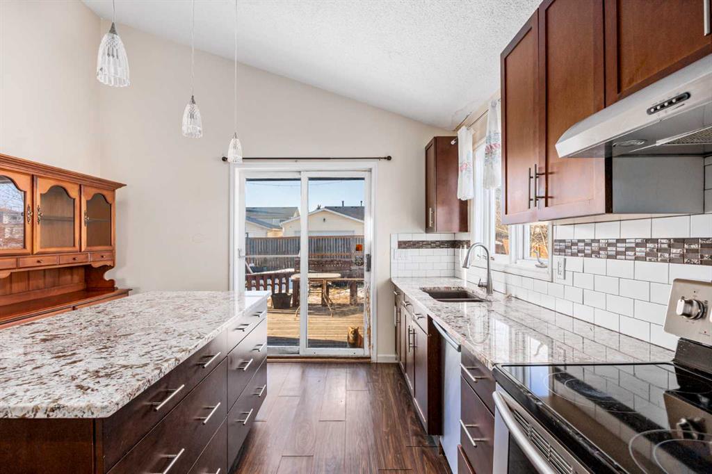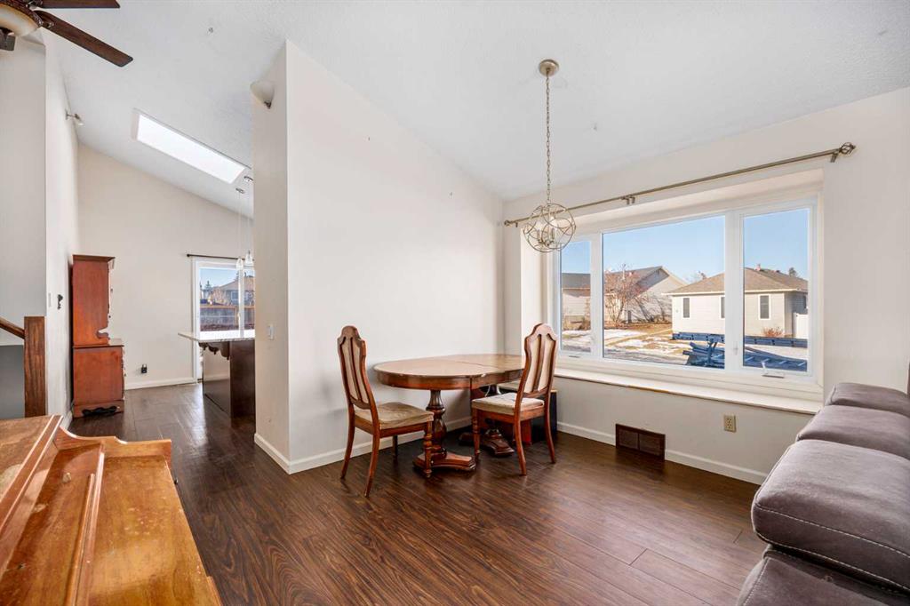 Fantastic opportunity awaits in Woodbine SW! There are so many advantages with 3 bedrooms, 2.5 baths on 4 levels spread over approx.1,800 sq. ft. of living space, plus a front, SW-facing, single, attached garage and parking pad. Enter to high-ceilinged, airy brightness showcasing wide-plank, laminate flooring throughout. Note, not only the large windows, but also the two skylights in the living room and dining room area bringing in even more natural light. Enter the kitchen where the skylight theme is repeated. An abundance of shaker-style cabinets in warm brown contrast with the granite countertops, tiled backsplash and stainless appliances. An island/breakfast bar adds more counter space for food prep and additional seating. The upper level features the primary bedroom with large walk-in closet and private 4-pc. ensuite. The railed balcony is accessible from the primary. Two additional bedrooms share a second 4-pc. bath. The lower level brings you to a large, well-lit recreation room perfect for family nights. A laundry room, storage area and 2-pc. bath finish this level. The private fenced backyard is entered via the kitchen. A substantial, railed, two-tiered wooden deck affords summer entertainment room with natural gas hookup included. The large backyard presents the perfect opportunity for a budding gardener to hone their green thumb skills as there is plentiful space to experiment in. Alley access makes RV parking an option. Location is superb for this home as it is on a corner lot and directly across from a green space – Woodborough Park. Major nearby routes include Stoney and Macleod Trails and Anderson Road plus transit routes close by. Also, Woodbine Square for shopping and restaurants, numerous schools – public and Catholic, playgrounds, tennis courts, Canyon Meadows Golf & Country Club, Spruce Meadows, Fish Creek Provincial Park and easy entry to all points west. This home is an excellent opportunity for someone with an expanding family and the possibility of options done your way and deserves a closer look.