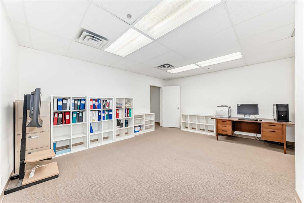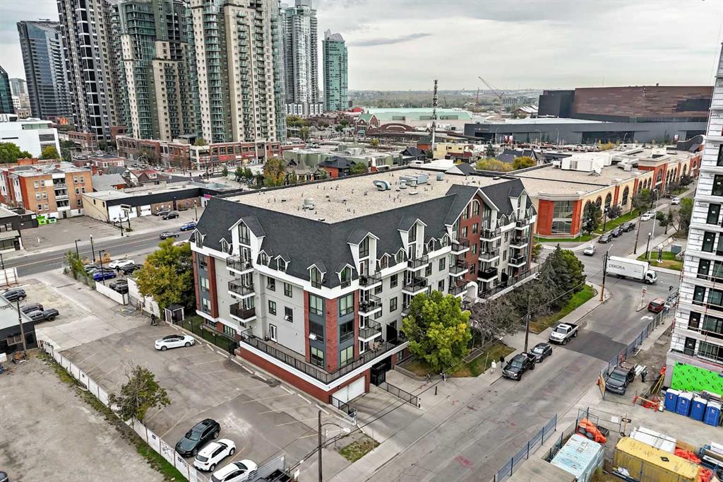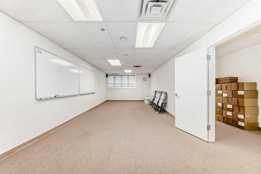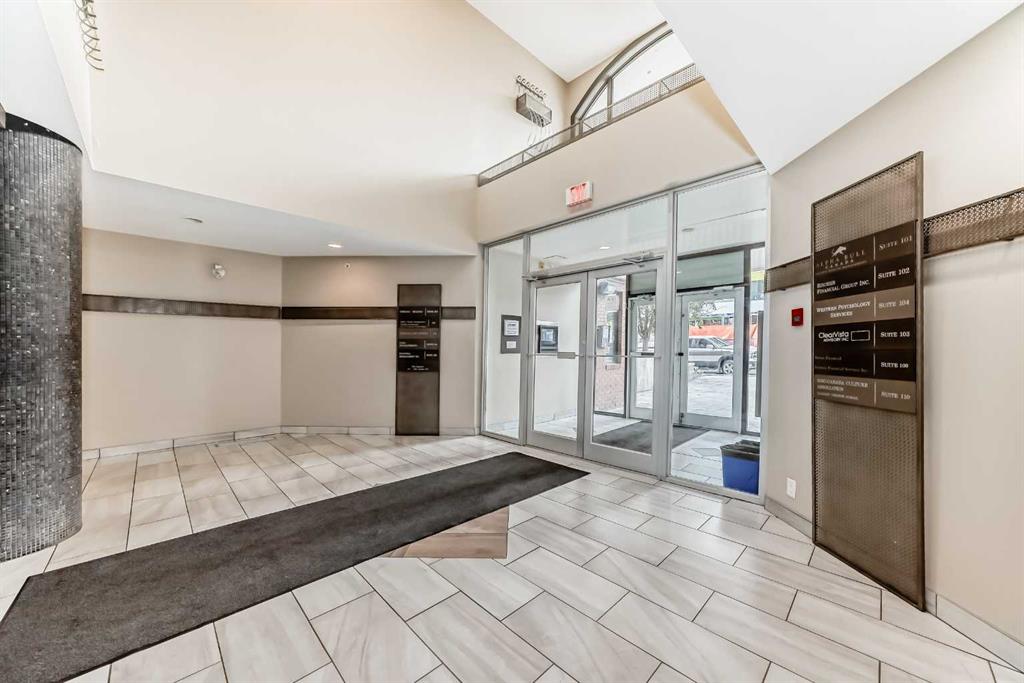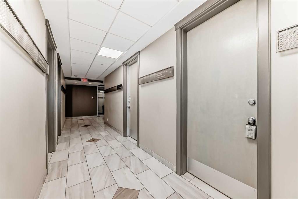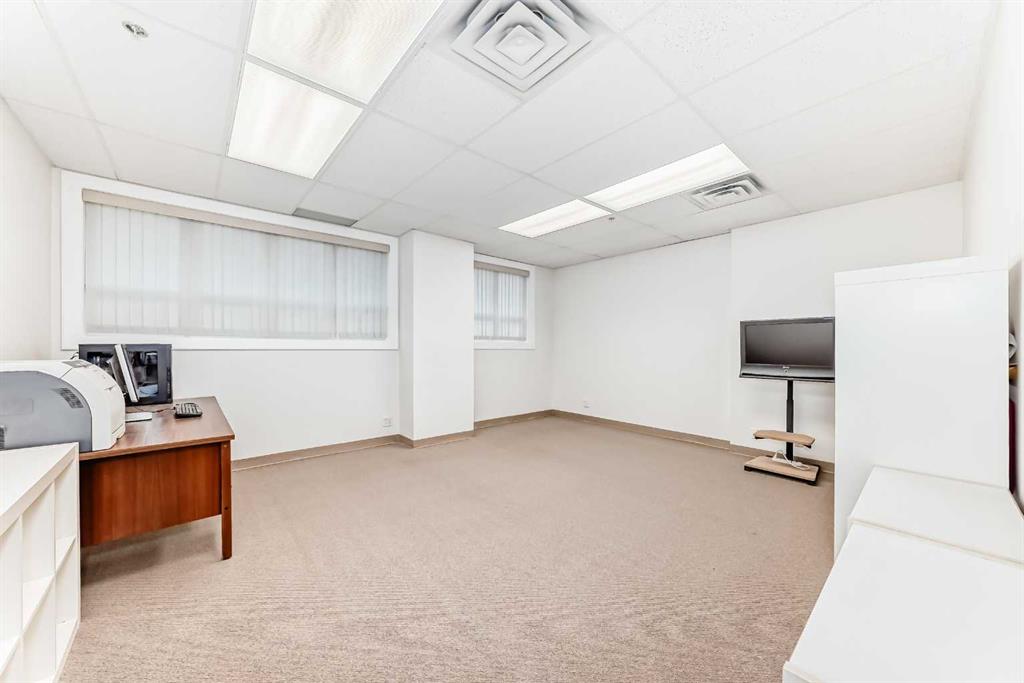 Prime opportunity in the heart of downtown! This versatile business condo features two spacious rooms and is perfect for entrepreneurs, professionals or investors. Currently configured for commercial use with office, meeting room and storage space, the unit offers the flexibility to convert into a comfortable residential space, making it ideal for live-work arrangements. Key Features: Located in the vibrant downtown core, close to shops, restaurants, transit, and Stampede grounds. Well partitioned rooms suitable for reception, office, board room, studio, or consultation spaces. Kitchen area with sink, counter space and storage. Secure building with heated underground parkade. 1 titled underground parking stall (#50) is included. Ideal for business owners looking to live and work in the same location.