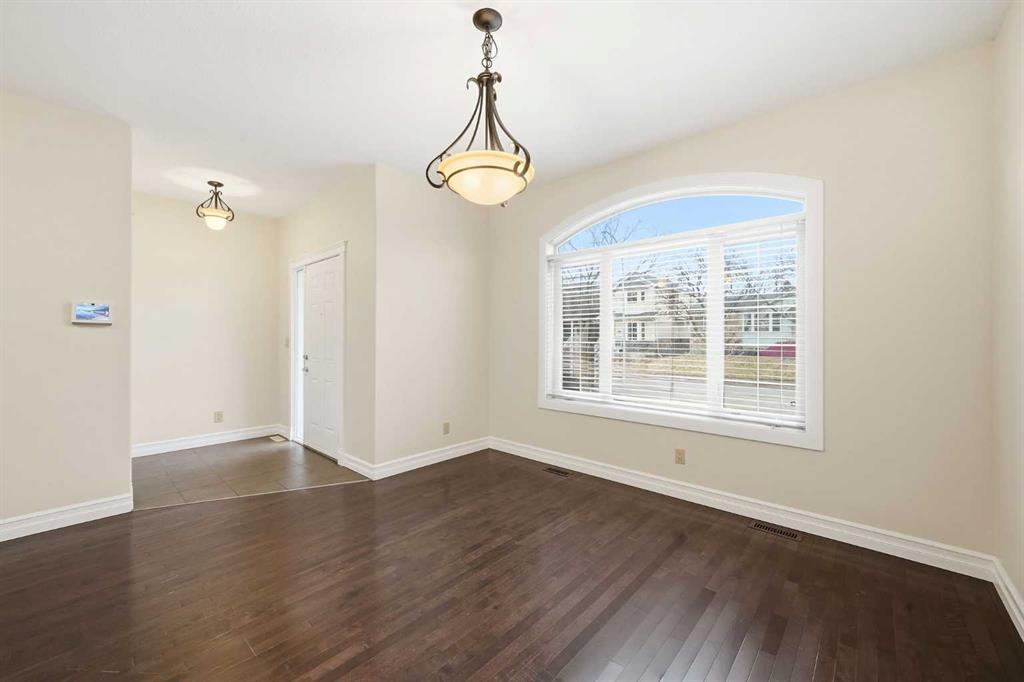 Additional features include central A/C, full-height custom cabinetry, built-in great room cabinets, a skylight above the staircase, gas line to BBQ, central vacuum rough-in, rear deck, window coverings throughout, and 9-foot main-floor ceilings. All of this is located just minutes from the city core.