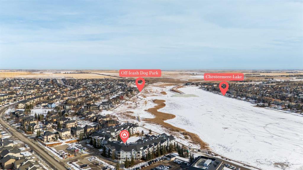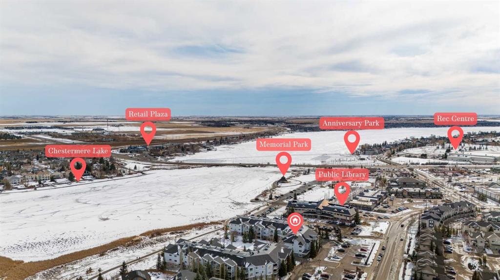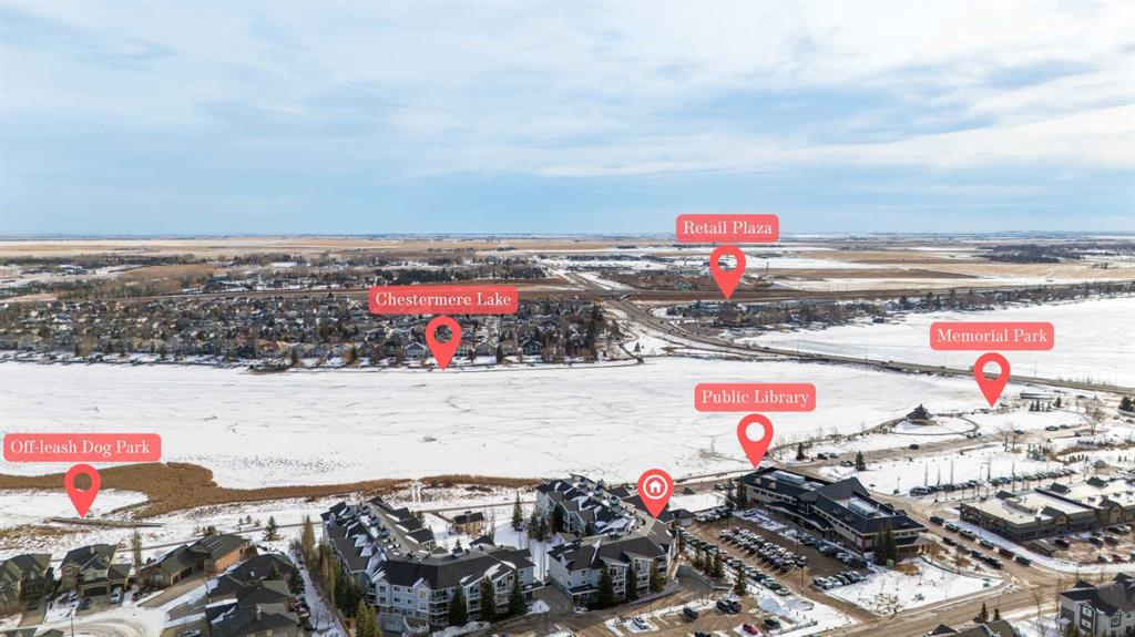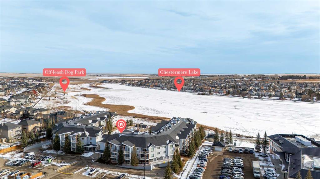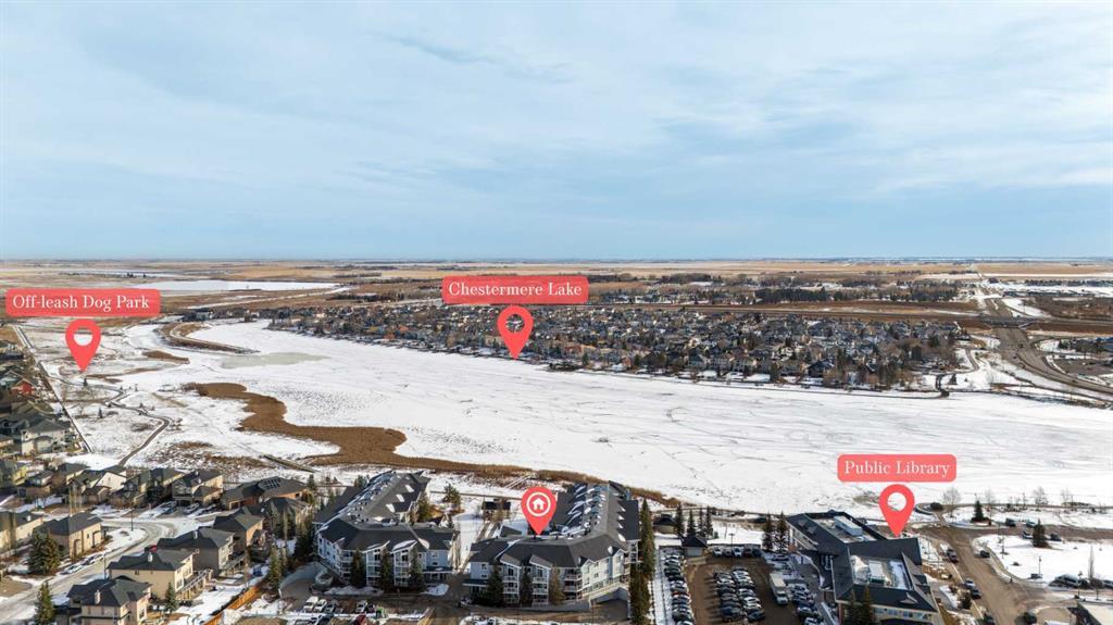 Such an incredible value in a once in a lifetime location. 180 view of Chestemere Lake. Unimaginable square footage in this 2 bedroom 2 bathroom condo. If you ever wanted to live in one of the most affordable and impressive locations and condos you will ever find. Large open living room, comfortable and roomy kitchen, spacious bedrooms, tons of natural light, and underground parking. Super walkable to grocery stores, banking, fast food, and so much more. I honestly could not think of anything more you could ask for. This is a very rare opportunity in this price range so don’t wait too long to come see it.