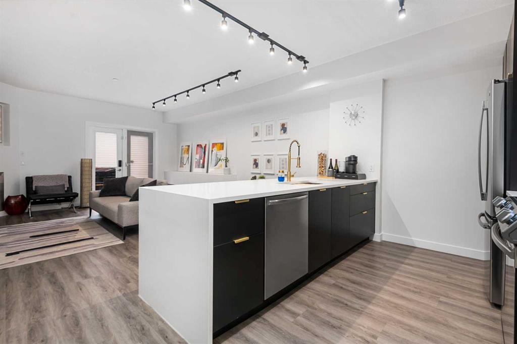 Freshly updated and move-in ready! This upscale 1-bedroom plus den condo in Lower Mount Royal has been beautifully renovated with a brand-new kitchen, quartz countertops with a waterfall edge, sleek stainless steel appliances, and vinyl plank flooring throughout. Fresh designer colors and modern materials create a stylish, contemporary feel. Located on the spacious main floor, this 865 sq. ft. suite features large principal rooms, a living room with a cozy gas fireplace, and direct access to your private patio through garden door. The generous primary bedroom includes a walk-in closet, while the den—currently classified as a non-bedroom due to the absence of a window—offers excellent flexibility as a guest room, home office, or second bedroom option. You’ll love the convenience of the in-suite laundry room with a new stacking washer/dryer, plus additional storage. The unit also comes with an assigned underground parking stall and access to bike storage. The Mantra building is tucked just off vibrant 17th Avenue, placing you steps from shops, restaurants, cafés, nightlife, Tomkins Park, transit, and everything that makes this one of Calgary’s most walkable and lively inner-city locations. Ideal for first-time buyers, investors, or downsizers seeking space, style, and unbeatable urban convenience. If you’re looking for a beautifully finished inner-city condo with room to live, work, and entertain—this one is a must-see.