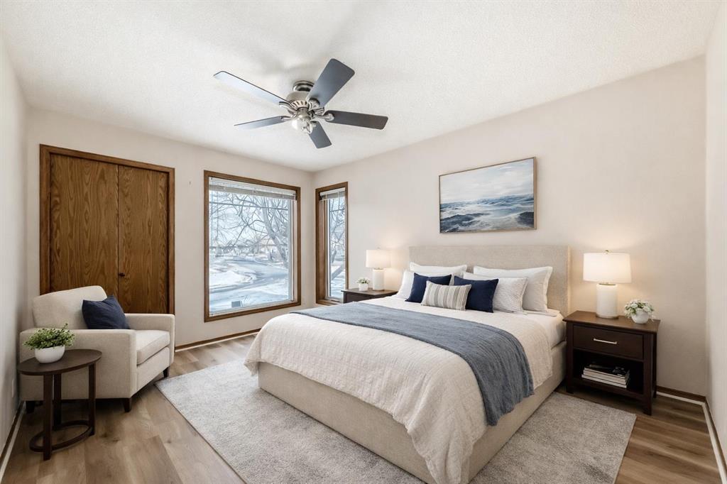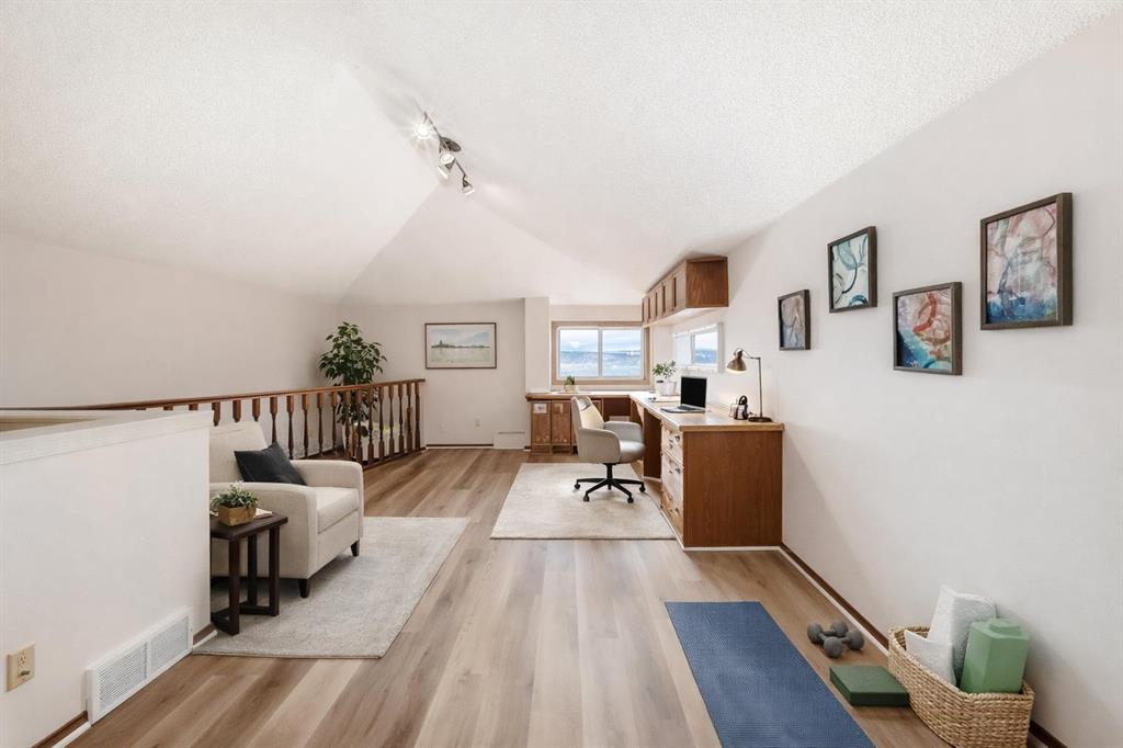 Beautifully maintained, open-concept bungalow with a rare loft, located in the heart of Somerset. This home offers 2 bedrooms on the main level plus 2 additional bedrooms in the fully developed basement. Features include vaulted ceilings throughout, two large architectural skylights, and a unique loft overlooking the living area. The spacious primary bedroom boasts a 5-piece ensuite with jetted tub and heated bathroom floors. Quality upgrades include superior cabinetry, granite countertops, stainless steel appliances, new electric range, upgraded lighting, central A/C, and new LVP flooring in the main floor living room/bedrooms and Loft. The basement is complete with 2 large bedrooms, 4-piece bathroom, den, and ample storage. Enjoy the landscaped, south-facing backyard with retractable awning and gas BBQ hookup, ideal for entertaining. Move-in ready with updates including roof & partial vinyl siding (2022), electric range (2022), fridge (2025). Walking distance to C-Train, water park, schools, shopping, and YMCA. Flexible possession available.