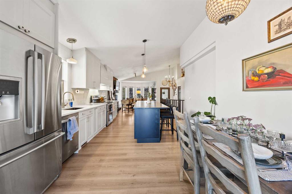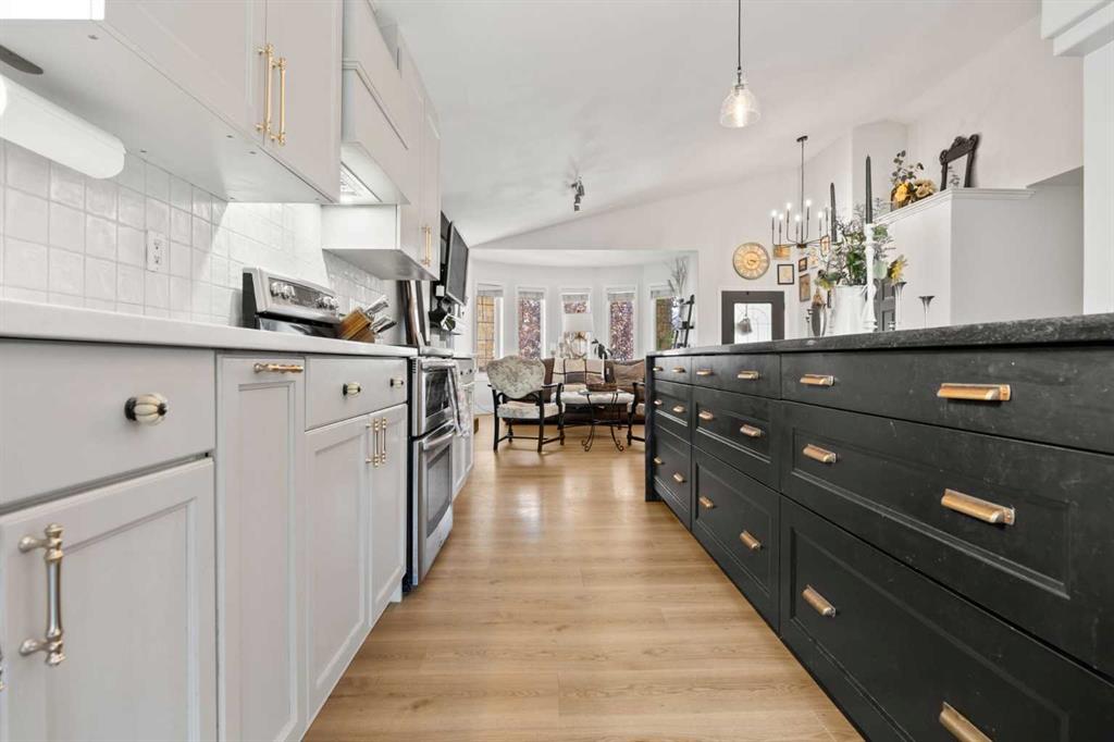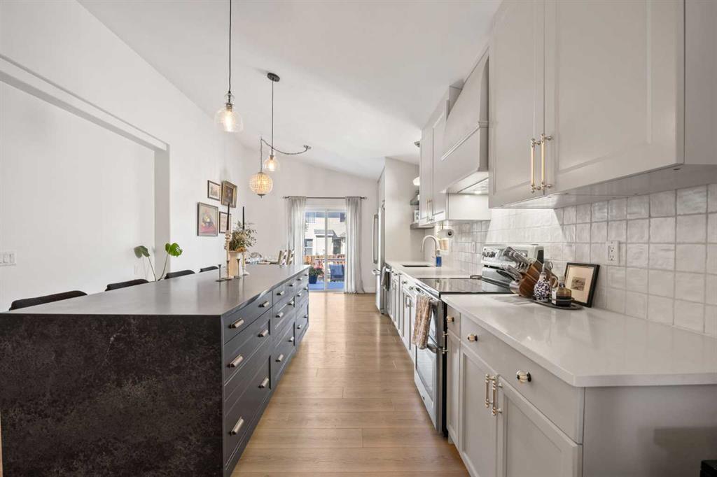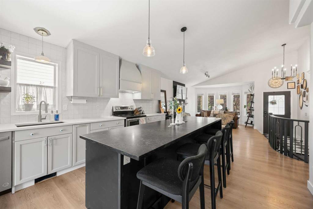 Offering over 2,385 SQ.FT. of developed living space, this stylish family home combines modern design with comfort and functionality. The spacious front entry features elegant TILE flooring and immediately impresses with soaring vaulted ceilings and a stunning front living room anchored by a cozy gas FIREPLACE. Luxury Vinyl Plank flooring flows effortlessly into the dining space and SHOWSTOPPER kitchen that is guaranteed to WOW!