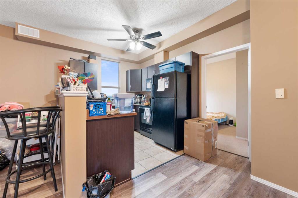 Perched on the 11th floor with sweeping, unobstructed views of the River Valley and Rocky Mountains, this bright corner unit combines comfort, functionality, and an unbeatable location. Featuring an open-concept layout, the home offers laminate flooring in the living and dining areas, creating a fresh and modern feel throughout the main living space. The kitchen is well-appointed with generous cabinetry, ample counter space, and a sunny window that floods the space with natural light. Two spacious bedrooms provide flexible living options, while a 4-piece bathroom with soaker tub, insuite laundry, and a titled indoor parking stall add everyday convenience. Residents of The Vantage enjoy access to a fitness centre, bike storage, and concierge services, all within walking distance to shopping, restaurants, the river pathway system, and downtown. Whether you’re a first-time buyer, urban professional, or savvy investor, this unit offers exceptional value and incredible views in one of the city’s most desirable locations.