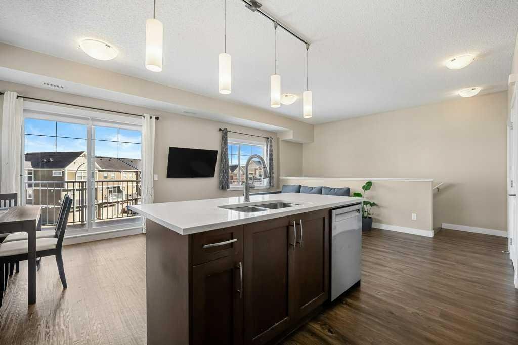 Open house Saturday April 11: 12-2pm. Welcome to this charming home in Kings Heights! Why buy an apartment when you can own your own townhome WITH GARAGE? This lovely corner unit offers the perfect blend of comfort and convenience. Step inside and discover a well-appointed kitchen boasting quartz countertops, gleaming stainless steel appliances, a generously sized island, and an abundance of cabinet and counter space. Adjacent to the kitchen is the spacious & inviting dining room area-great for those family dinners! The living room is also a good size and a great spot to kick back and relax after a long day of work. It gives access to a lovely OVERSIZED balcony, where you can soak up the sunshine. This open concept floorplan is sure to please the most discerning buyer and is great for entertaining family and friends. Retreat to the tranquility of two spacious bedrooms, each offering ample space. This floor also has a full bathroom plus laundry. Convenience is key with an attached single-car garage. It also has a great STORAGE room underneath the stairs and another one that can be accessed from the garage. And Stonekeep has visitor parking! This property has easy access to major roads such as Highway 2, shopping, schools and golf. This is a great investment, or an ideal place to call home. Come check this one out before it is gone!