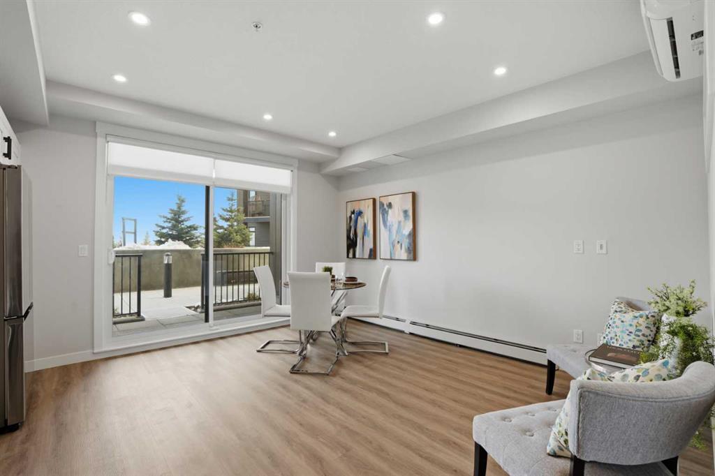 *****Welcome to Unit 1102 at 200 Seton Circle SE—a stylish upgraded 500 Sq Ft, 1 bedroom, 1 bathroom condo designed for simplicity, comfort, and connection. Perfectly positioned on the main floor, this home offers true walk-out living to a spacious courtyard, making it ideal for pet owners, retirees, or anyone who values easy access and low-maintenance living. Step inside and you’ll immediately notice the 9’ ceilings and the light, airy feel, enhanced by a smart, open-concept layout that maximizes both space and function.